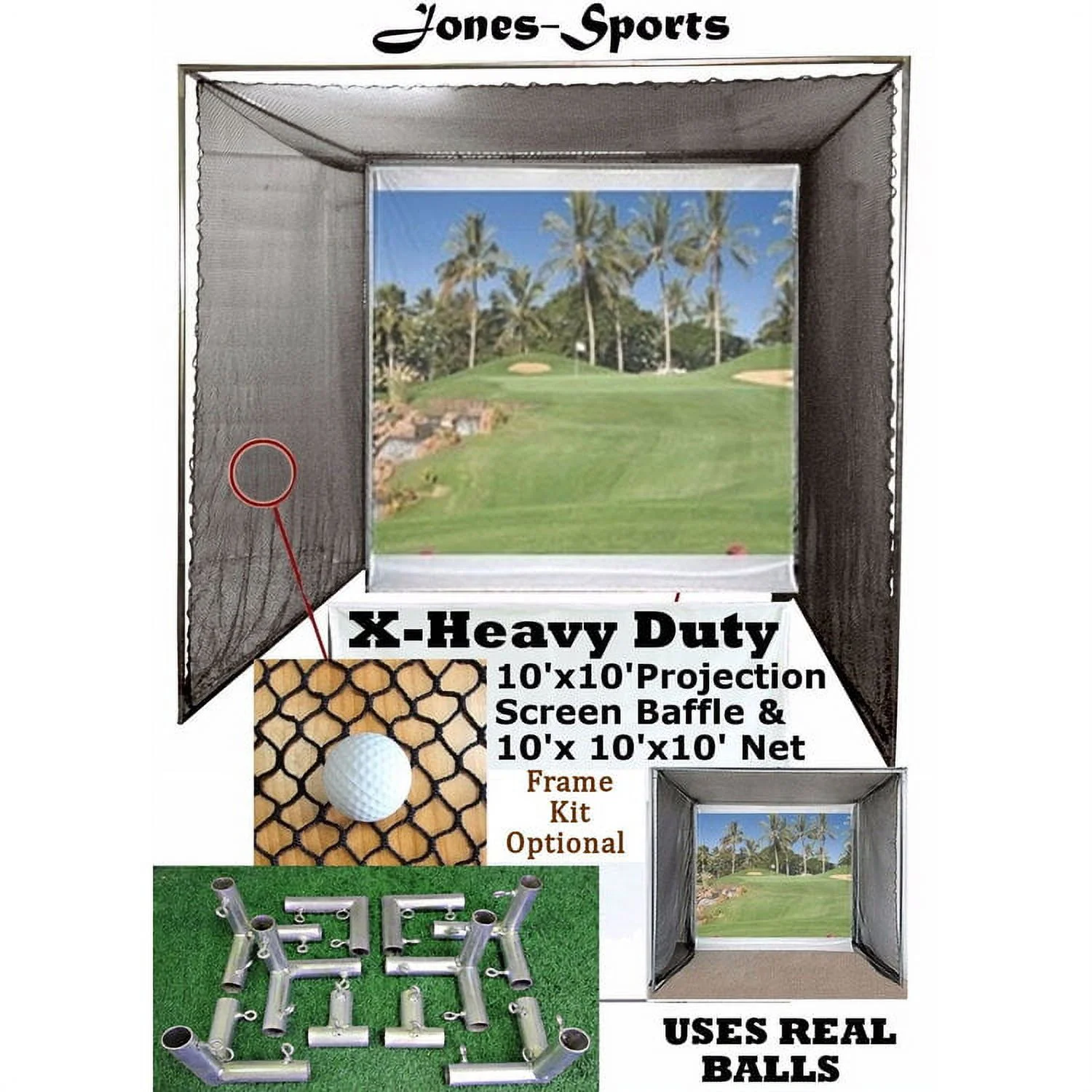 Jones-Sports 10' X10' Golf Impact Projection Screen Baffle and 10'x10'x10' Practice Golf Net with Frame Kit (Long Pipes NOT Included)
