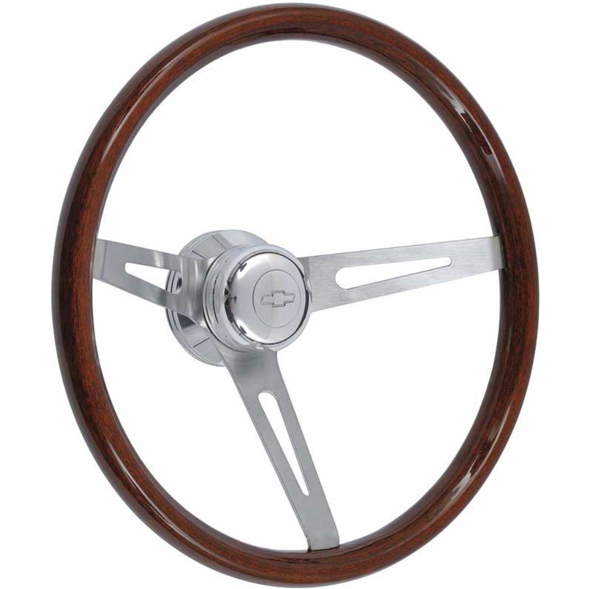 1957-1969 Dark Wood Steering Wheel Kit Polished Hub With Chevrolet Bowtie