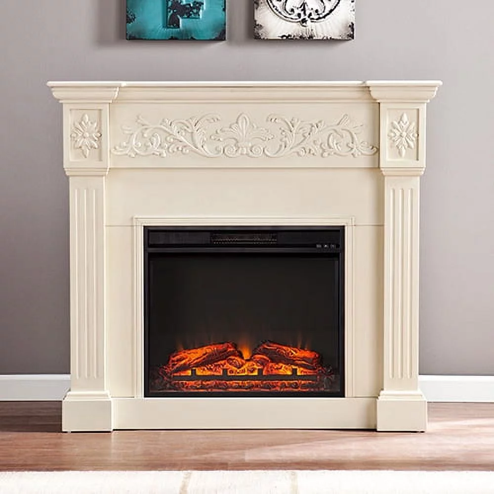 Jordan II Electric Fireplace, Ivory