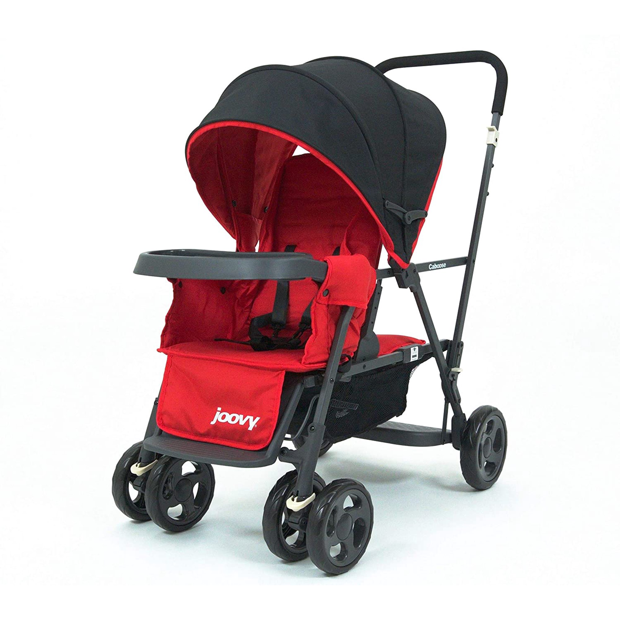 Joovy Caboose Too Graphite Stand-On Tandem Stroller, Red with Caboose Rear Seat, Red