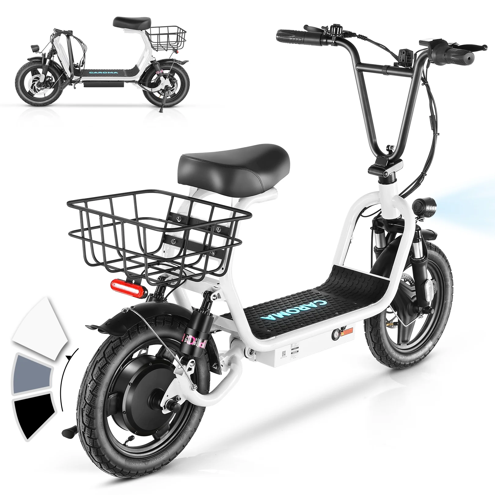 Caroma Peak 500W Electric Scooters for Adults, 14" Fat Tire, 187 Wh Battery, 12 Miles Range, 20MPH Top Speed, Foldable Electric Scooter with Seat