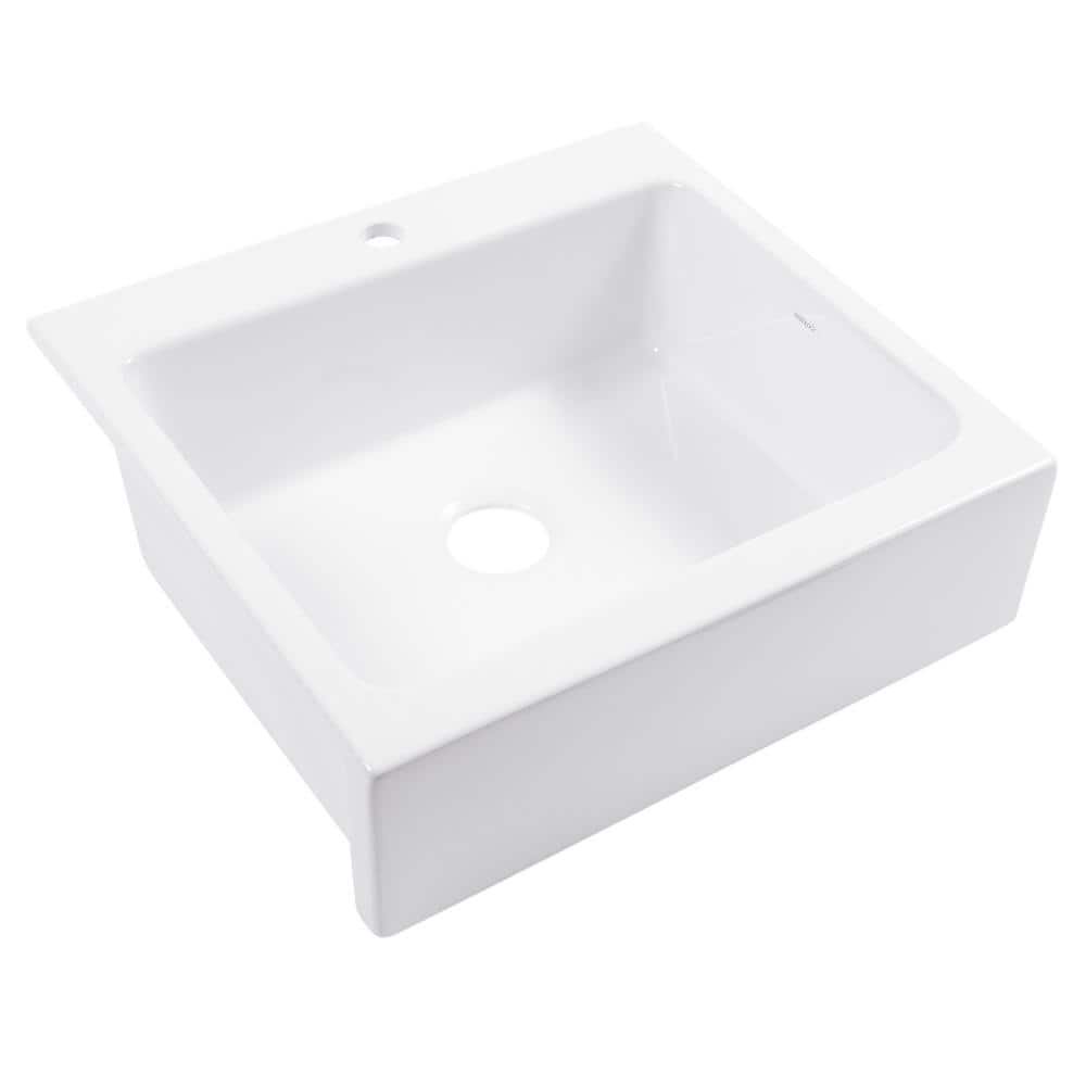 Josephine 26 in. 1-Hole Quick-Fit Farmhouse Apron Front Drop-in Single Bowl Crisp White Fireclay Kitchen Sink
