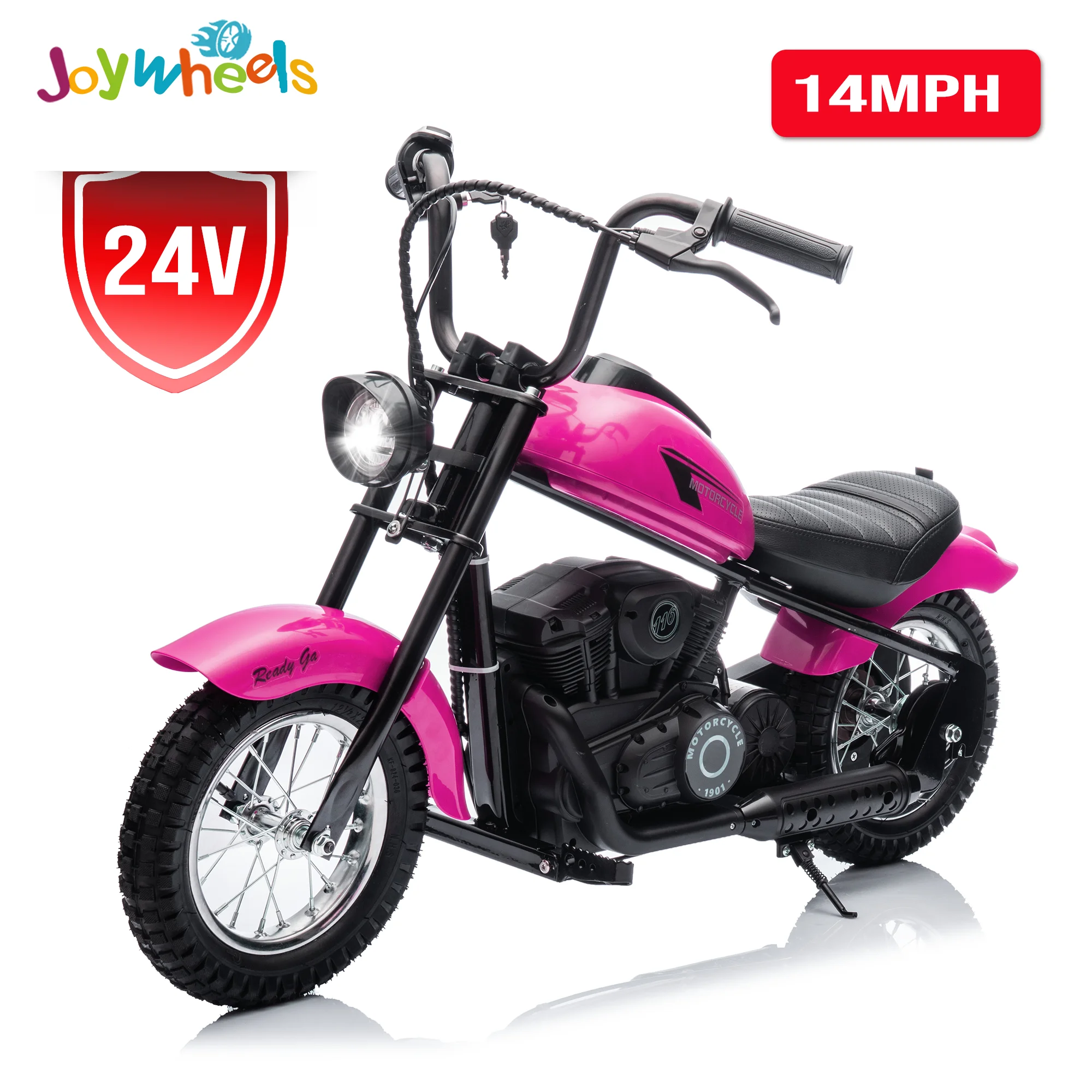 JoyWheels 24V Electric Dirt Bike, 250W Ride on Toy Motorcycle for kids,14 MPH, Age 13+,Pink