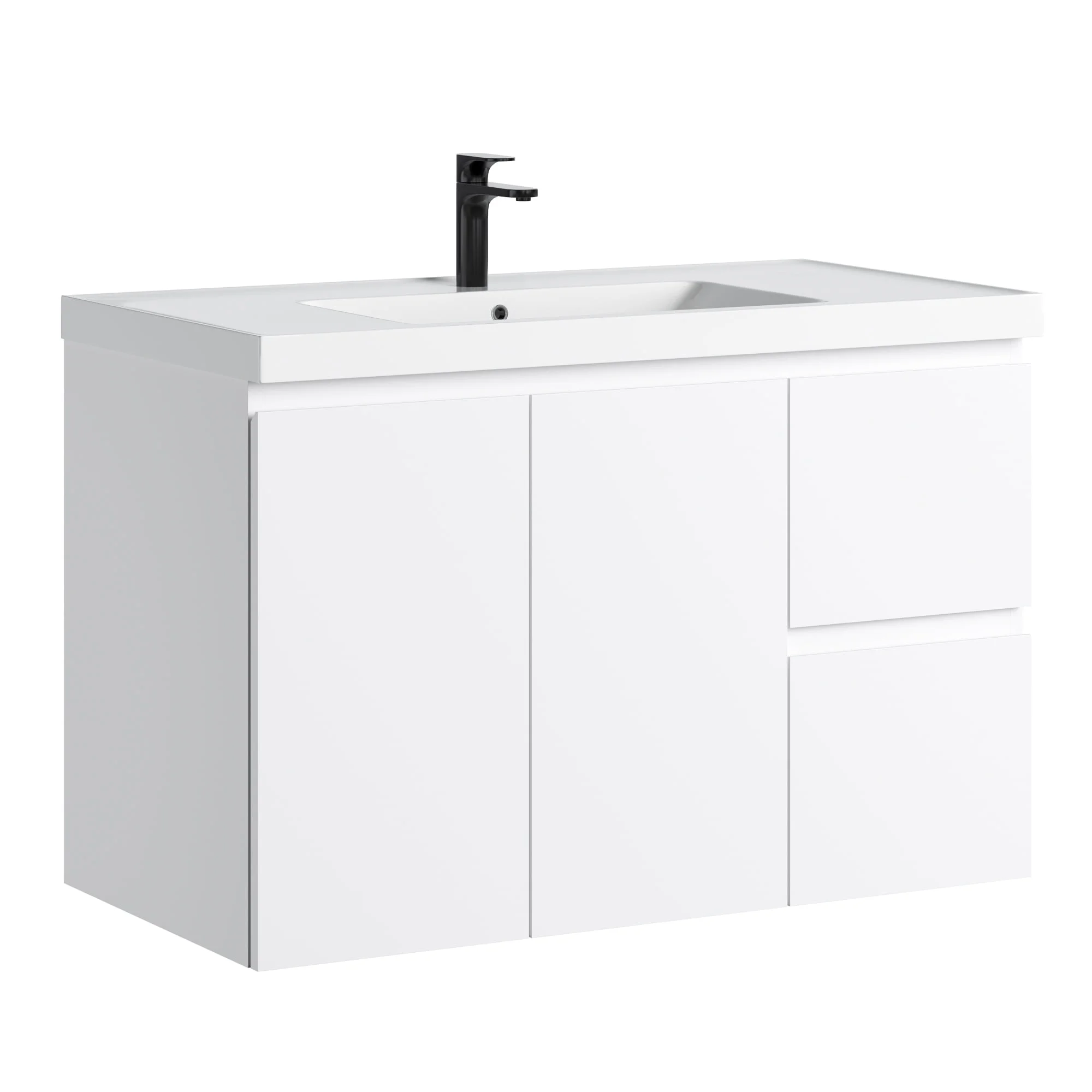 JPND 36" Bathroom Vanity with Single Hole Sink Top, Wall Mounted Storage Cabinet Set with Two Soft Close Drawers and Doors, White 36"W x 19"D x 24"H