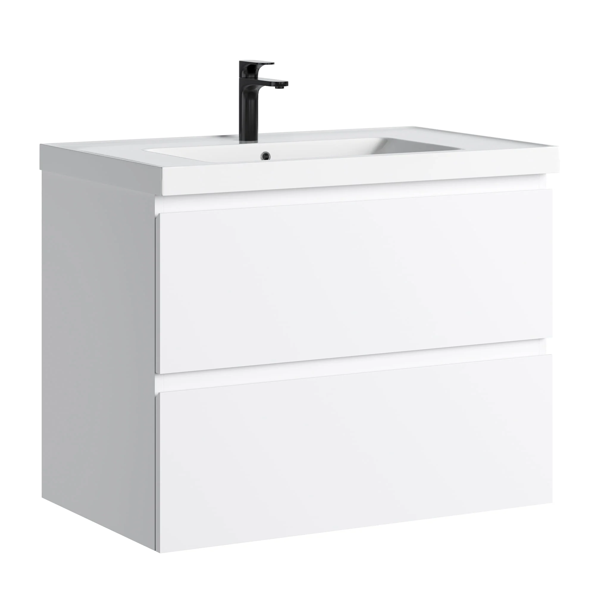 JPND 30" Bathroom Vanity with Single Hole Sink Top, Wall Mounted Storage Cabinet Set with Two Soft Close Drawers and Doors, White 30"W x 19"D x 24"H