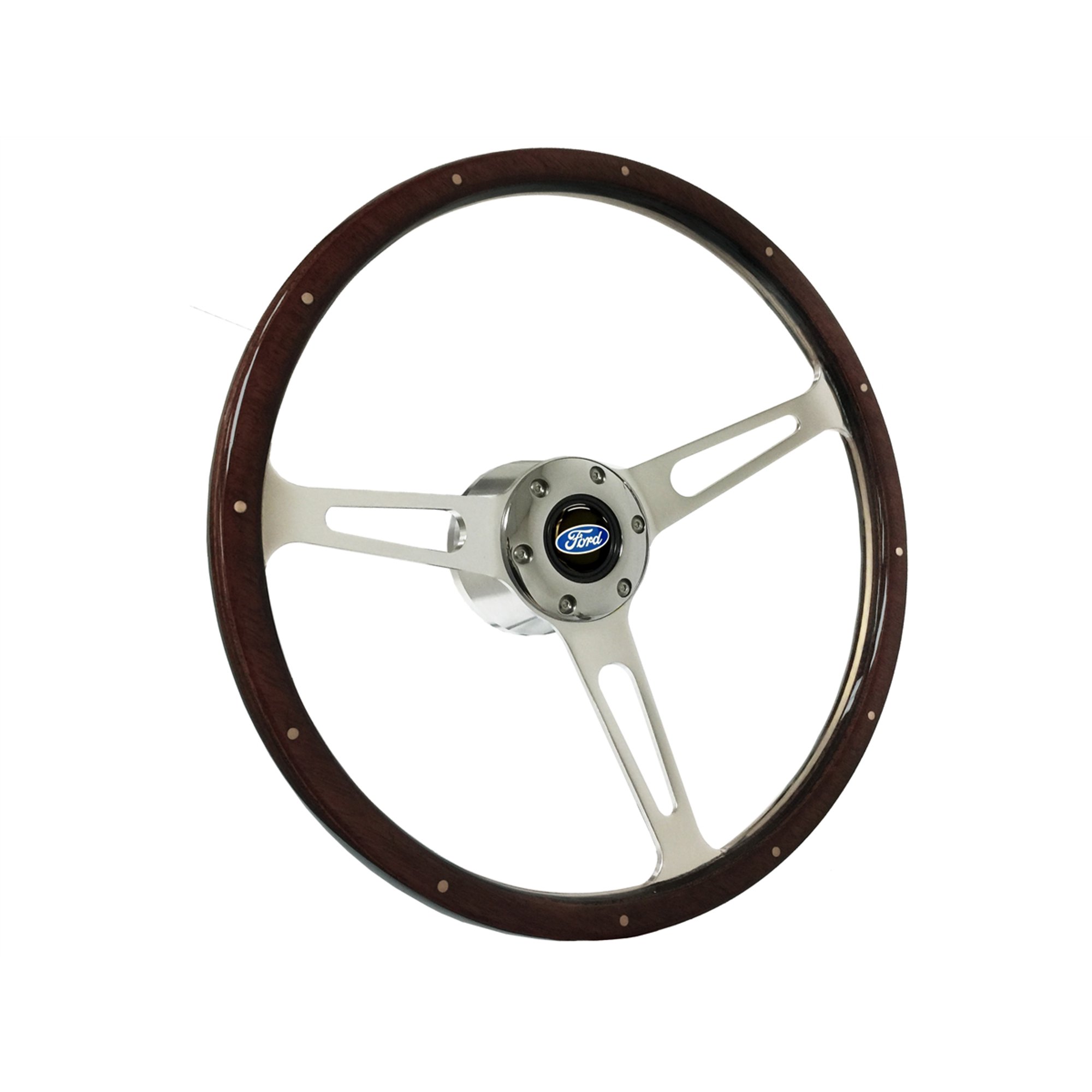 1964-72 Ford Passenger/Truck; VSW S6 Mahogany Finish Steering Wheel Chrome Kit with Classic Blue Oval Emblem
