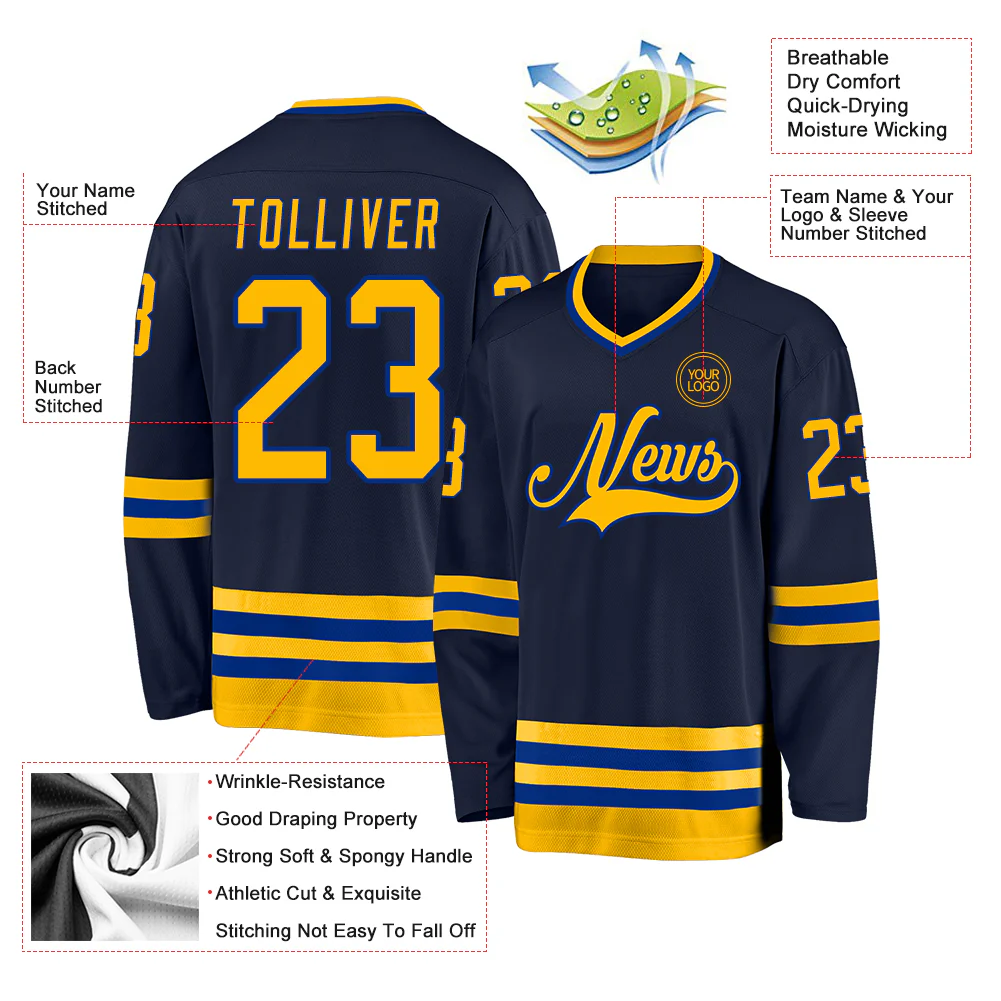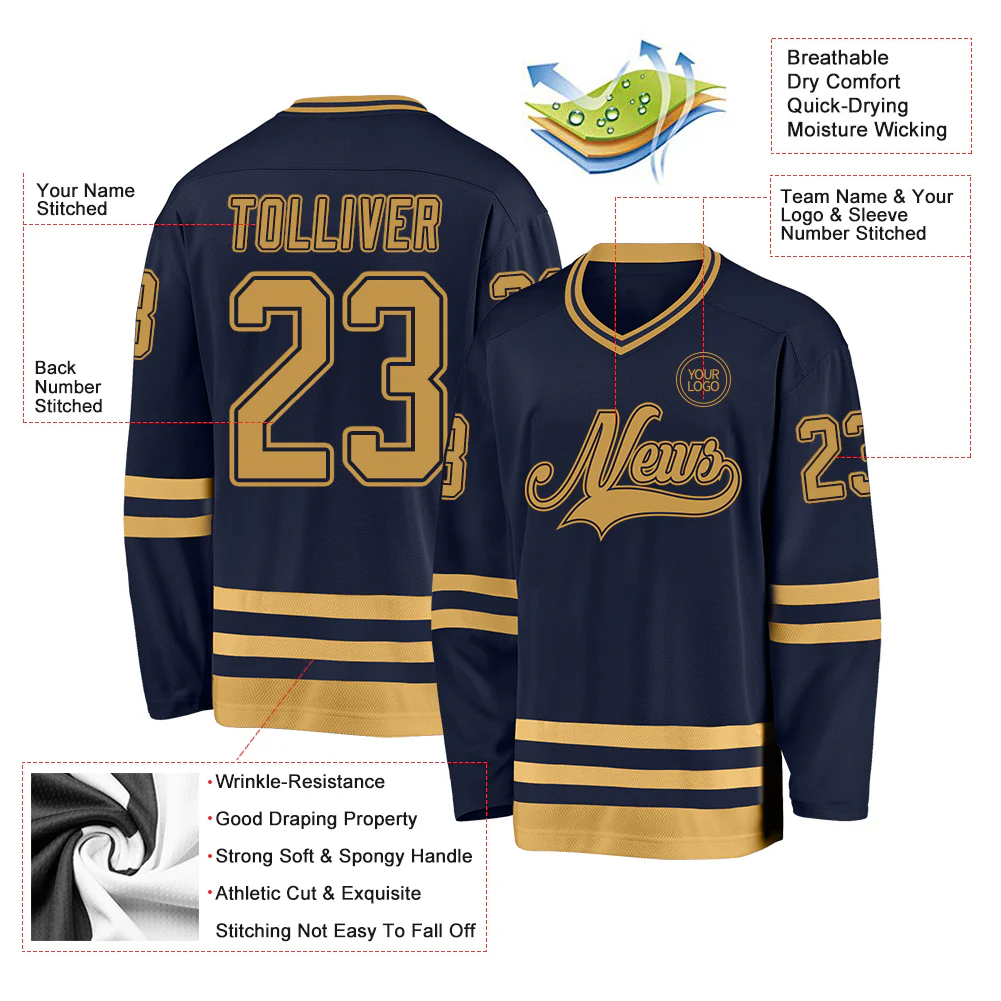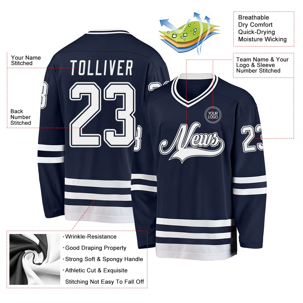 Custom Navy Vintage USA Flag-White Hockey Jersey