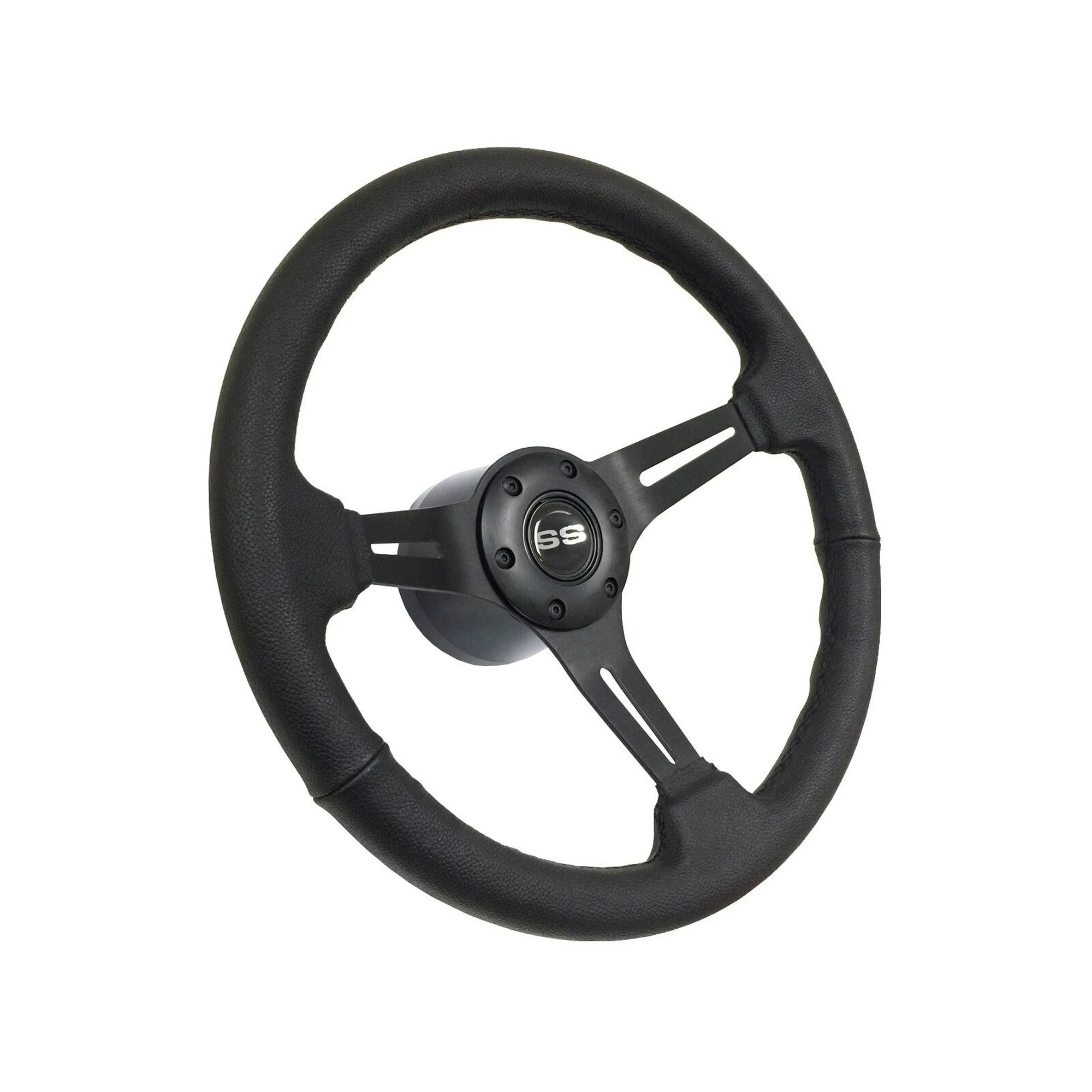 1967-1968 Chevrolet Passenger VSW 6 Bolt Genuine Leather Steering Wheel Black Kit, Silver SS Emblem
