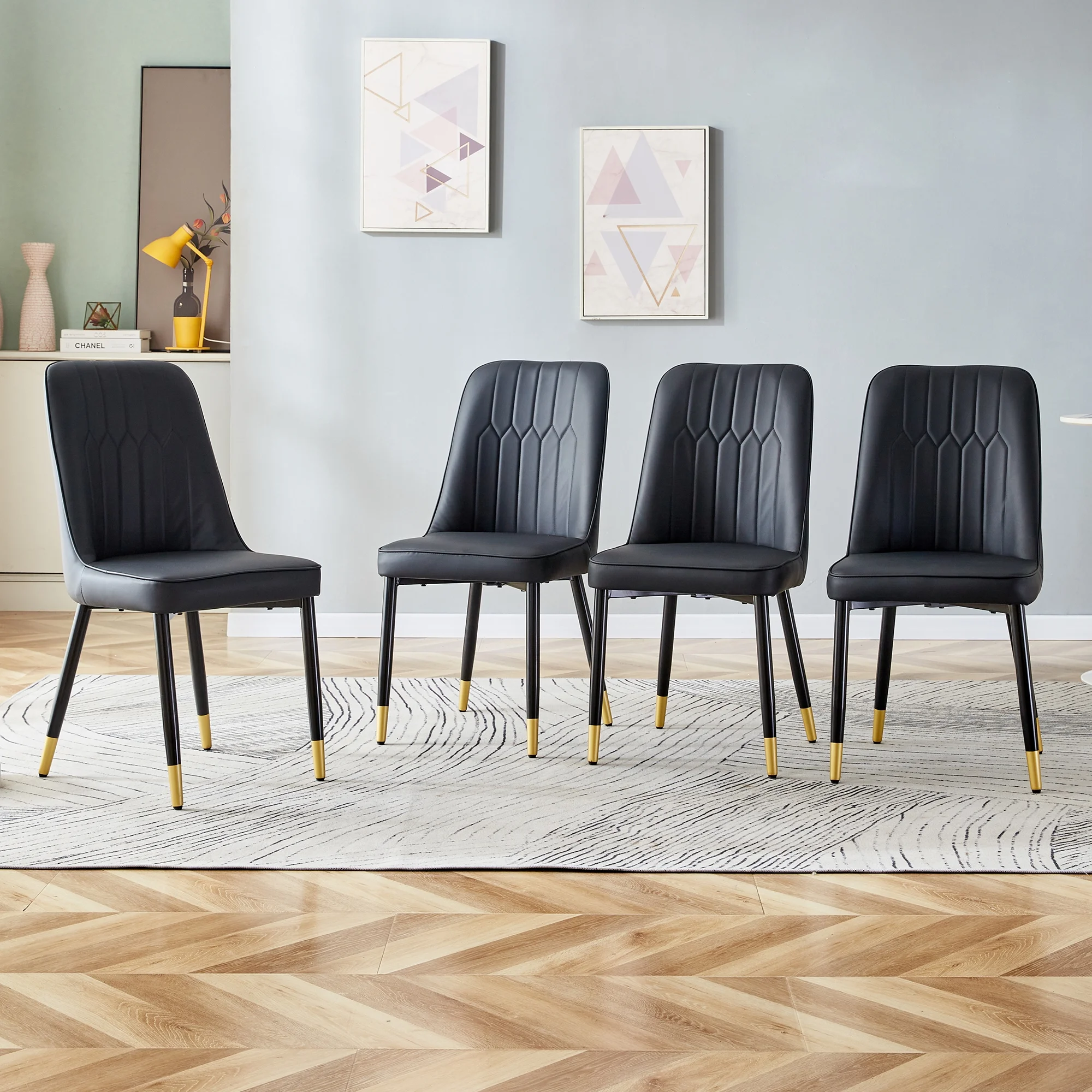 JUFU Modern Dining Chairs, Set of 4, Upholstered Kitchen Chairs Mid Century Armless Faux Leather Chairs,Black
