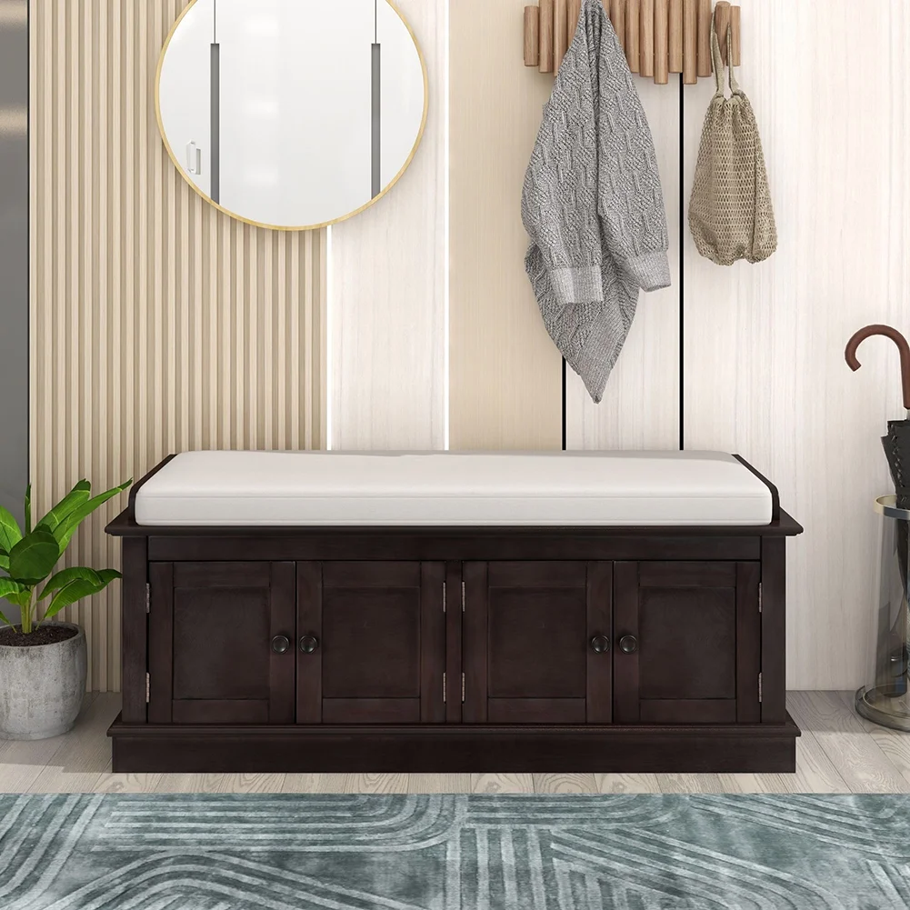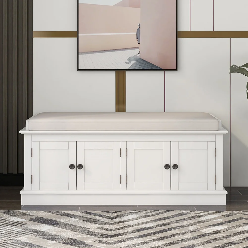 Juiluna Multifunctional Storage Bench With 4 Doors Adjustable Shelves Shoe Bench With Removable Cushion Entryway Ottoman Sitting Bench For Living Room, Entryway, Bedroom
