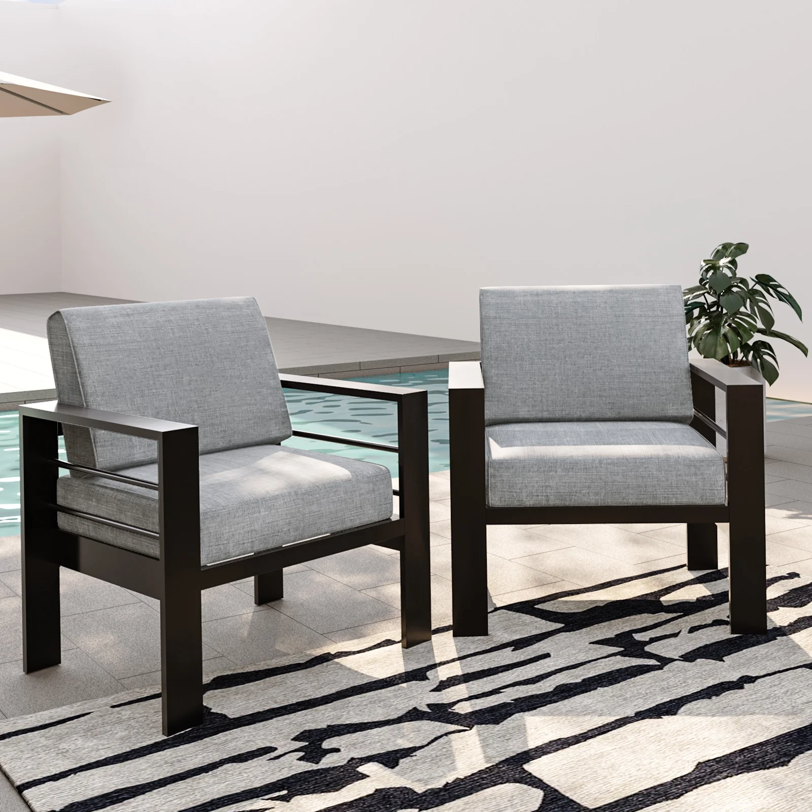 July’s Song Outdoor Chairs Set of 2,2 PCs Aluminum Patio Chairs, Modern Patio furniture Set with Cushion,Gray