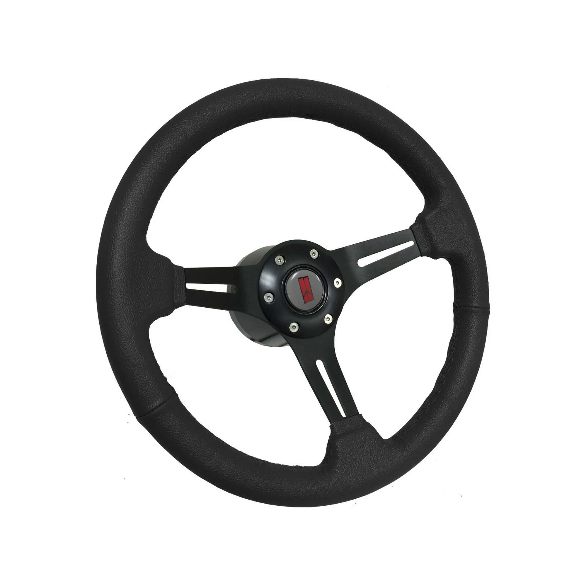 1969-1989 Oldsmobile; VSW 6 Bolt Genuine Leather Steering Wheel Black Kit, Rocket II Emblem