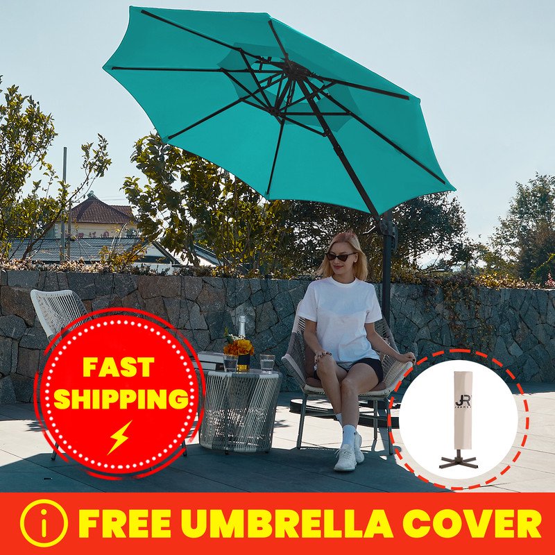 JUSTLET 11ft Outdoor Patio Round Double Top Medium Roman Umbrella - Turquoise