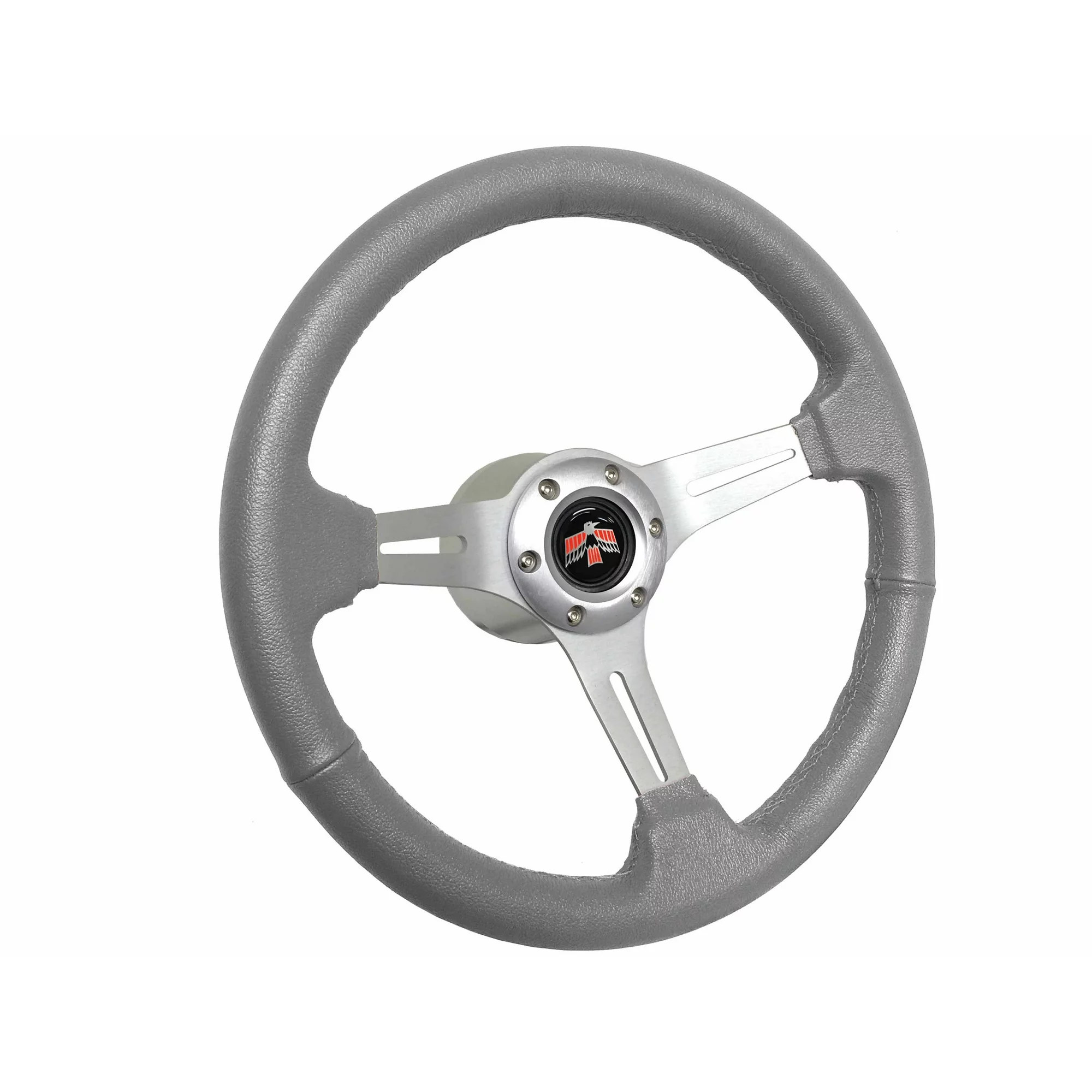 1969-1989 Pontiac Firebird; VSW 6-Bolt Gray Leather Steering Wheel Brushed Aluminum Kit, 67-69 Firebird Emblem