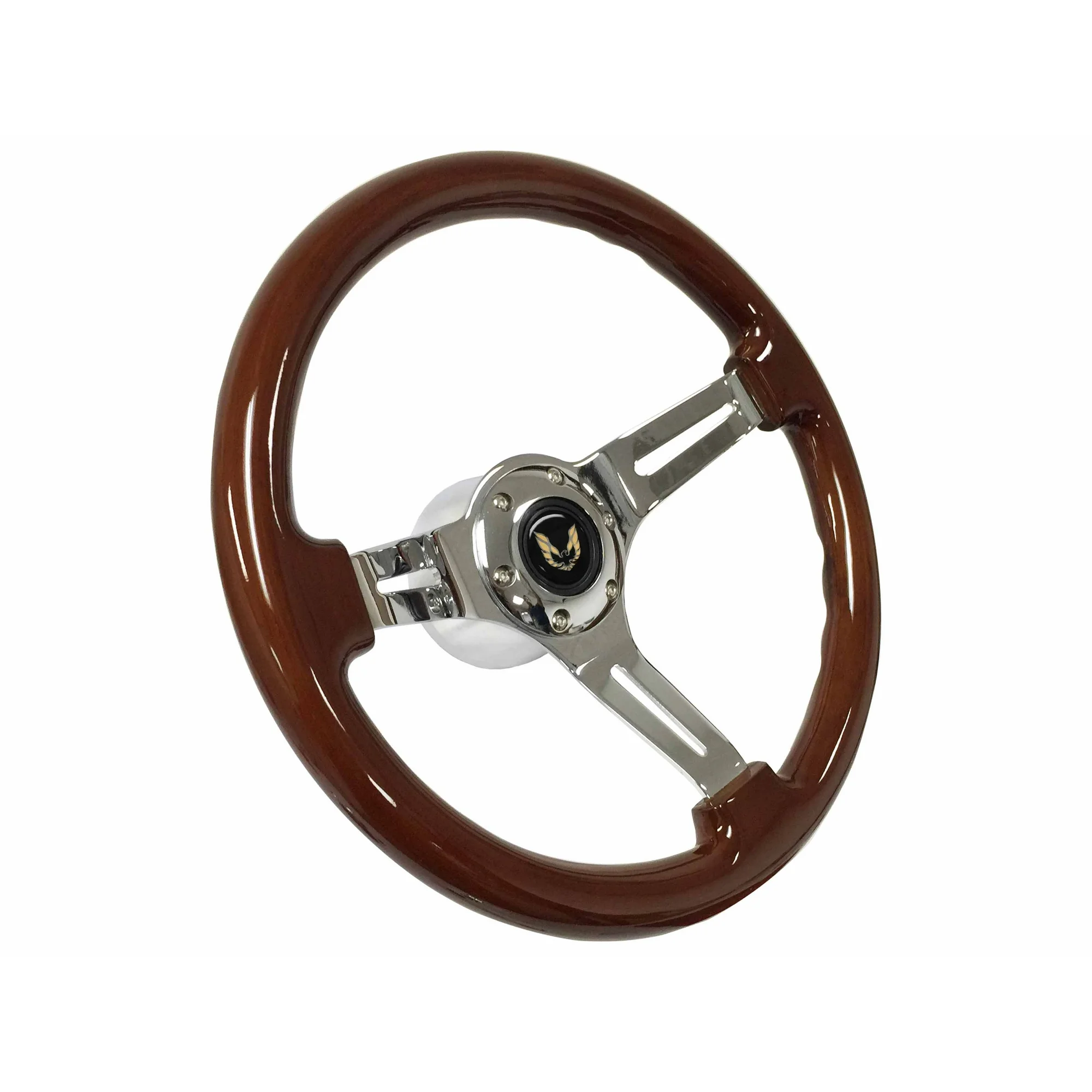 1969-1989 Pontiac Firebird; VSW 6 Bolt Mahogany Wood Steering Wheel Chrome Kit, Gold Emblem