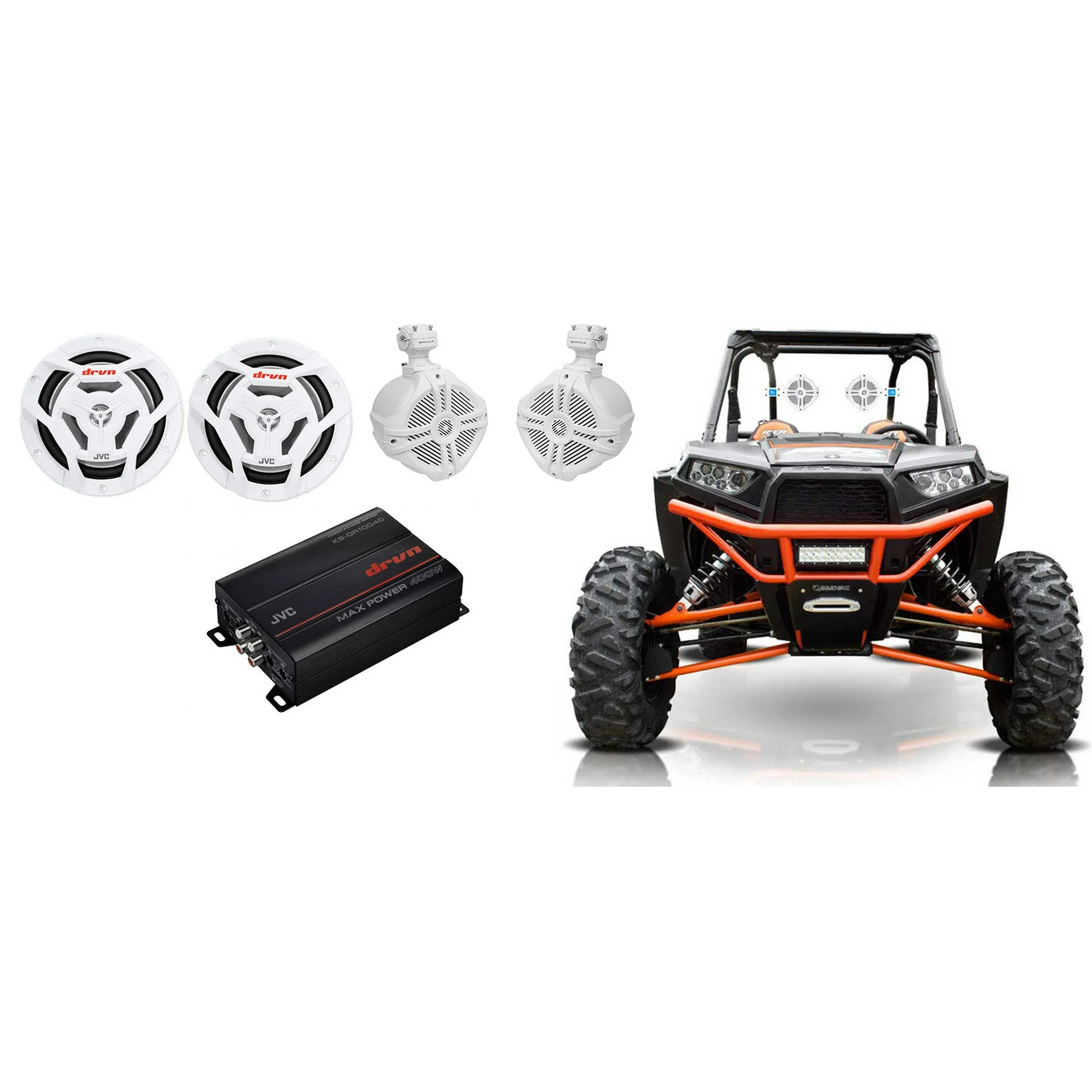 JVC KS-DR1004D 4-Channel Amplifier+White 6.5" Tower+Coaxial Speakers RZR/ATV/UTV