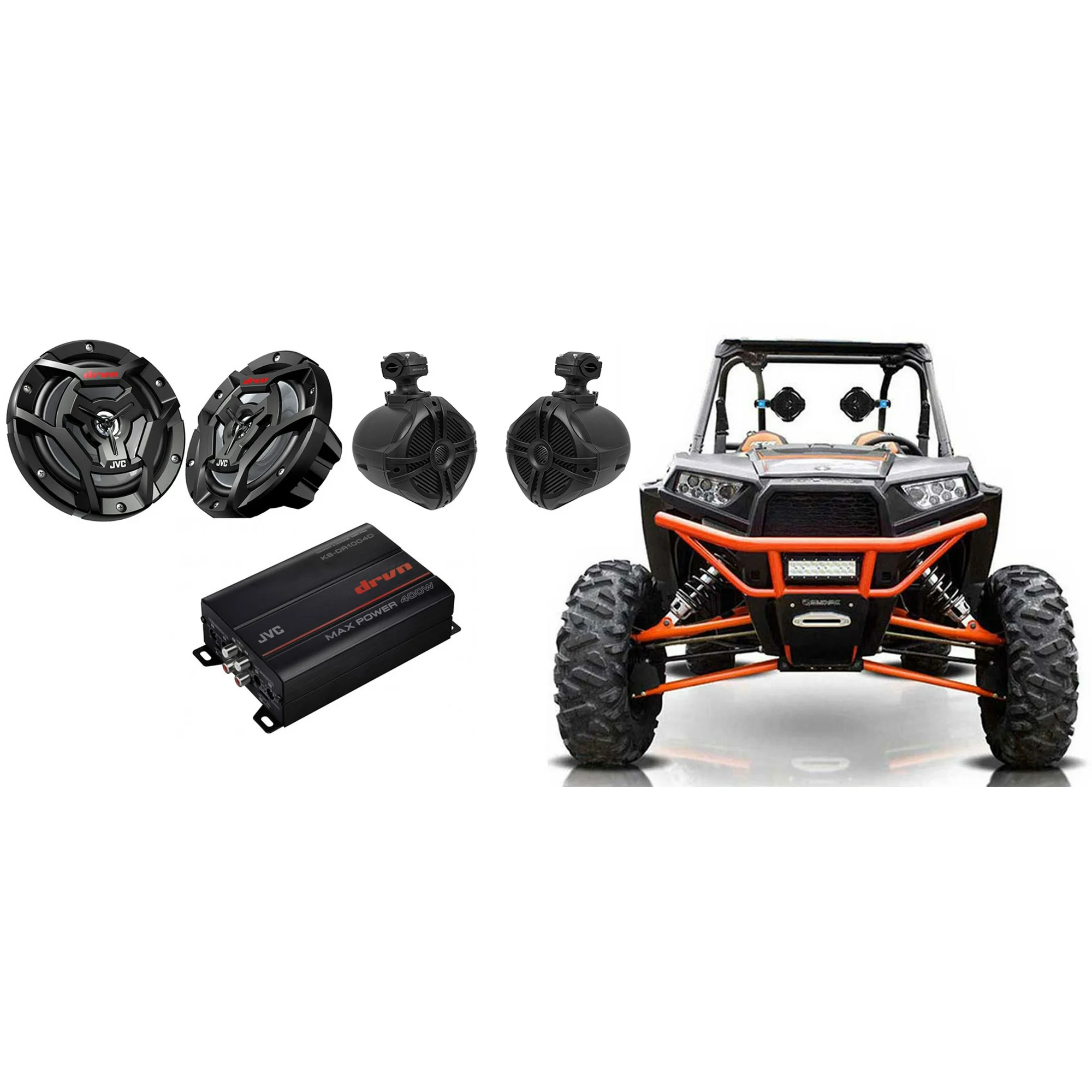 JVC KS-DR1004D 4-Channel Amplifier+BLACK 6.5" Tower+Coaxial Speakers RZR/ATV/UTV