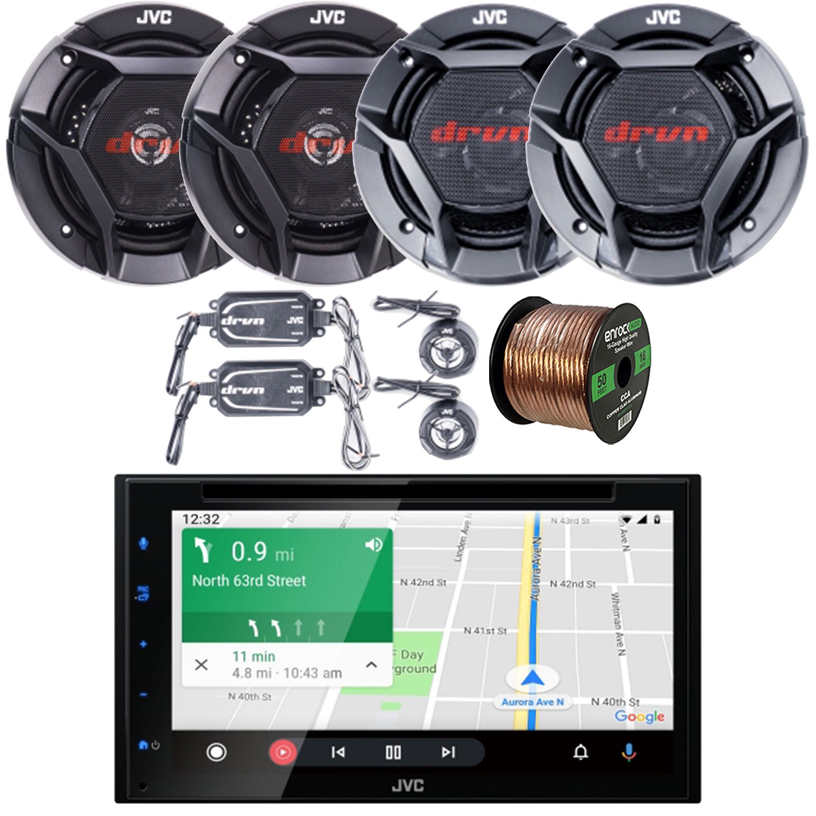 JVC KW-V660BT Double DIN AM/FM Stereo Bluetooth USB DVD Player Multimedia Receiver Bundle with 2x 6.5" 2-Way 360W Peak Car Component Speakers, 2x 6.5" Coaxial 300W Vehicle Speakers, Speaker Wire