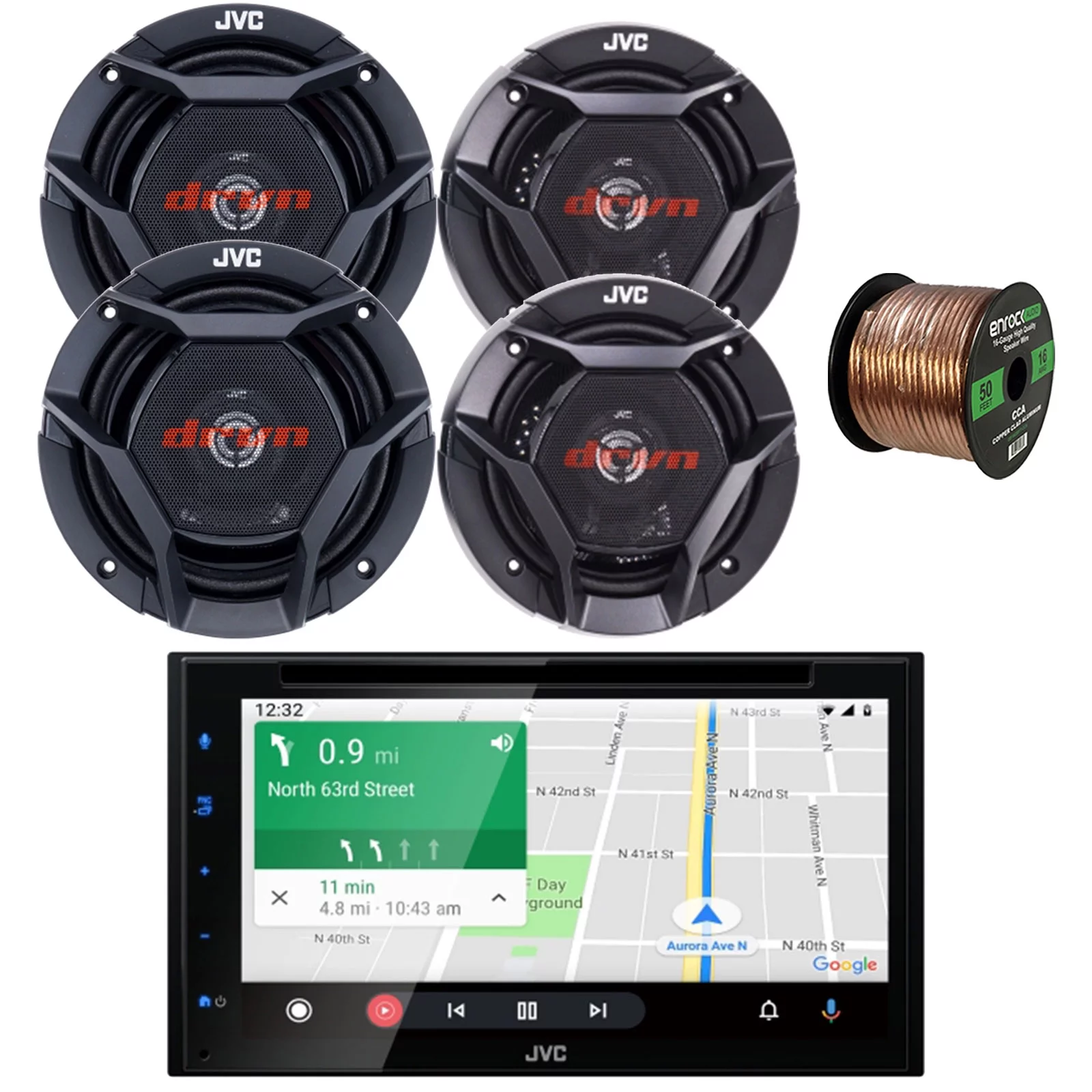 JVC KW-V66BT Double DIN AM/FM Radio Bluetooth USB DVD Player Multimedia Receiver Bundle with 2x 5.25" 2-Way Coaxial 260W Peak Car Speakers, 2x 6.5" Coaxial 300W Max Vehicle Speakers, Speaker Wire