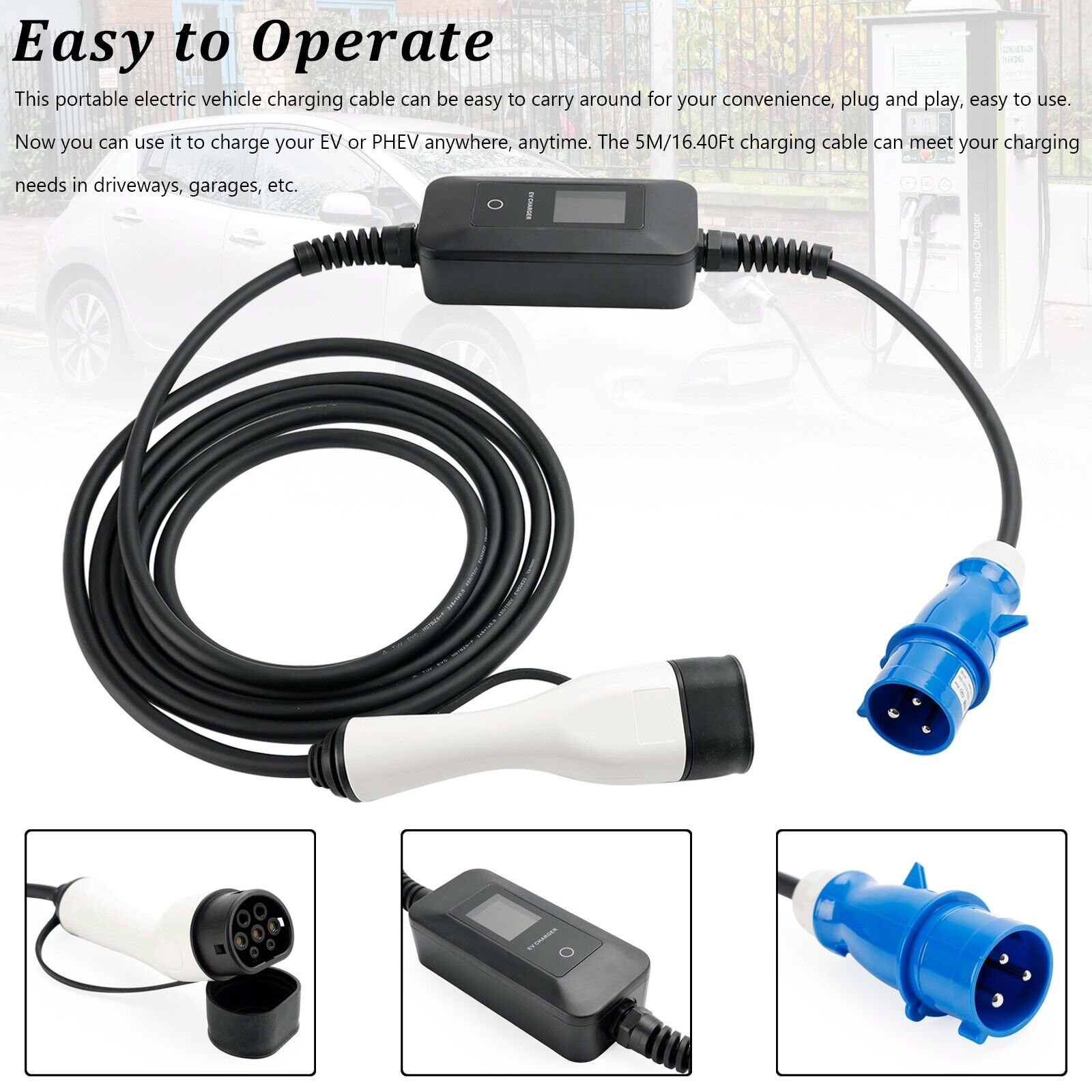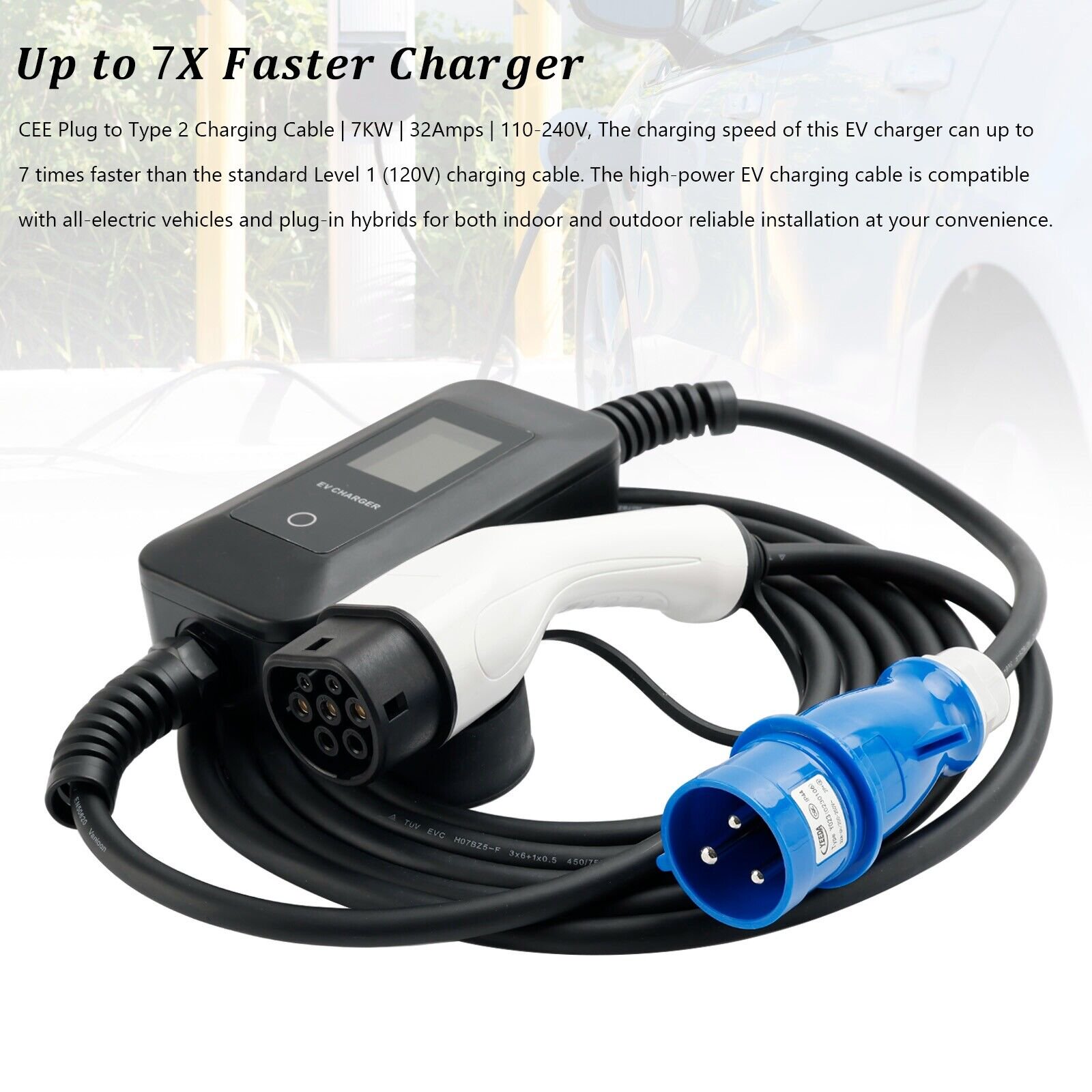 CEE 3 Pin Plug Type 2 EV Charger Adjustable 8A/10A/16A/20A/24A/32A Digital 6M #1