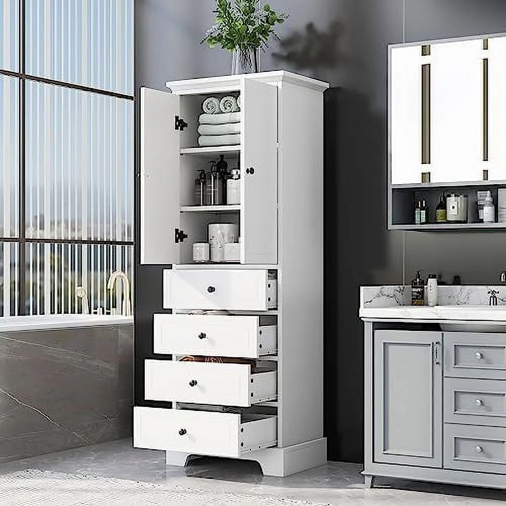 JYHOME Harper & Bright Designs Cabinet 67 Inch Freestanding Tall Floor Bathroom Cabinet with One Door Two Drawers and Adjustable for Bathroom Office and Living Room (White)