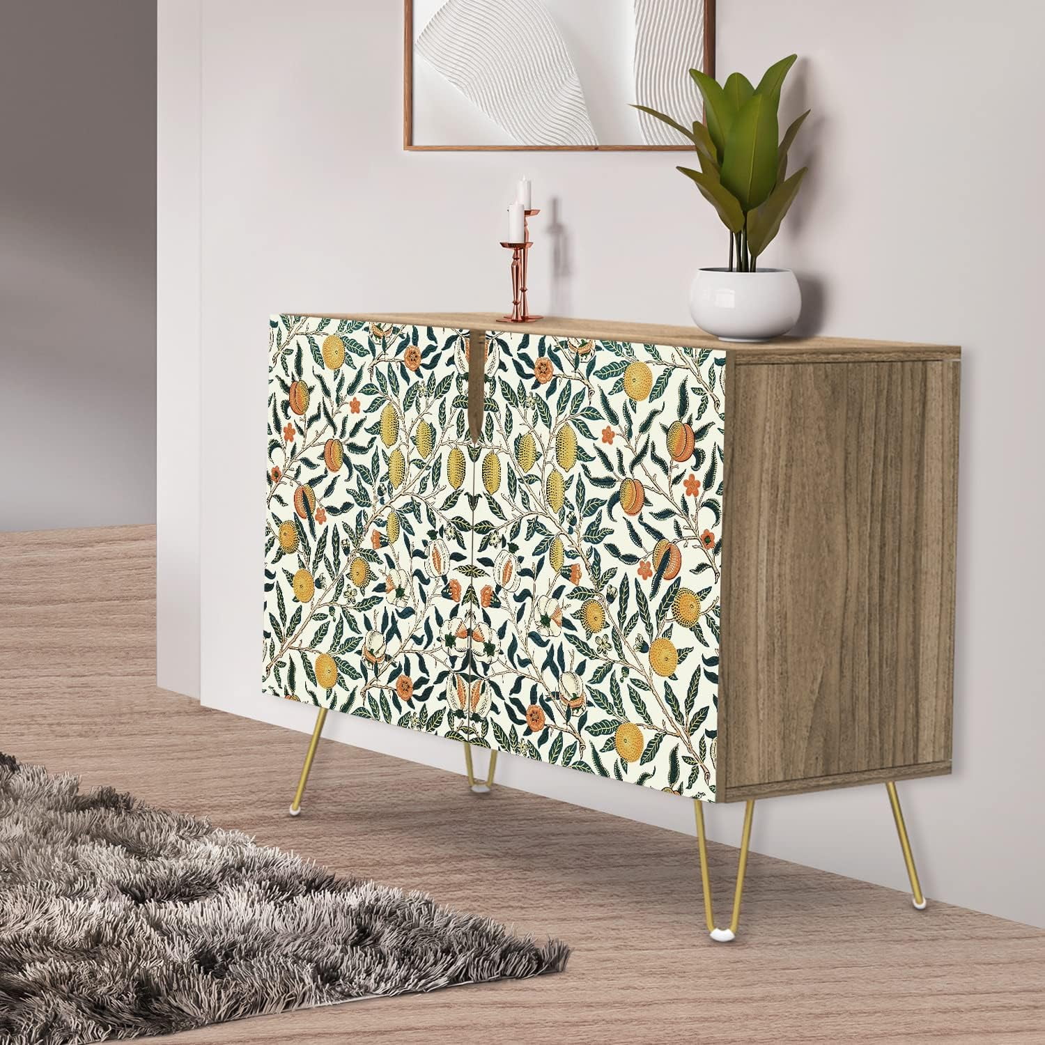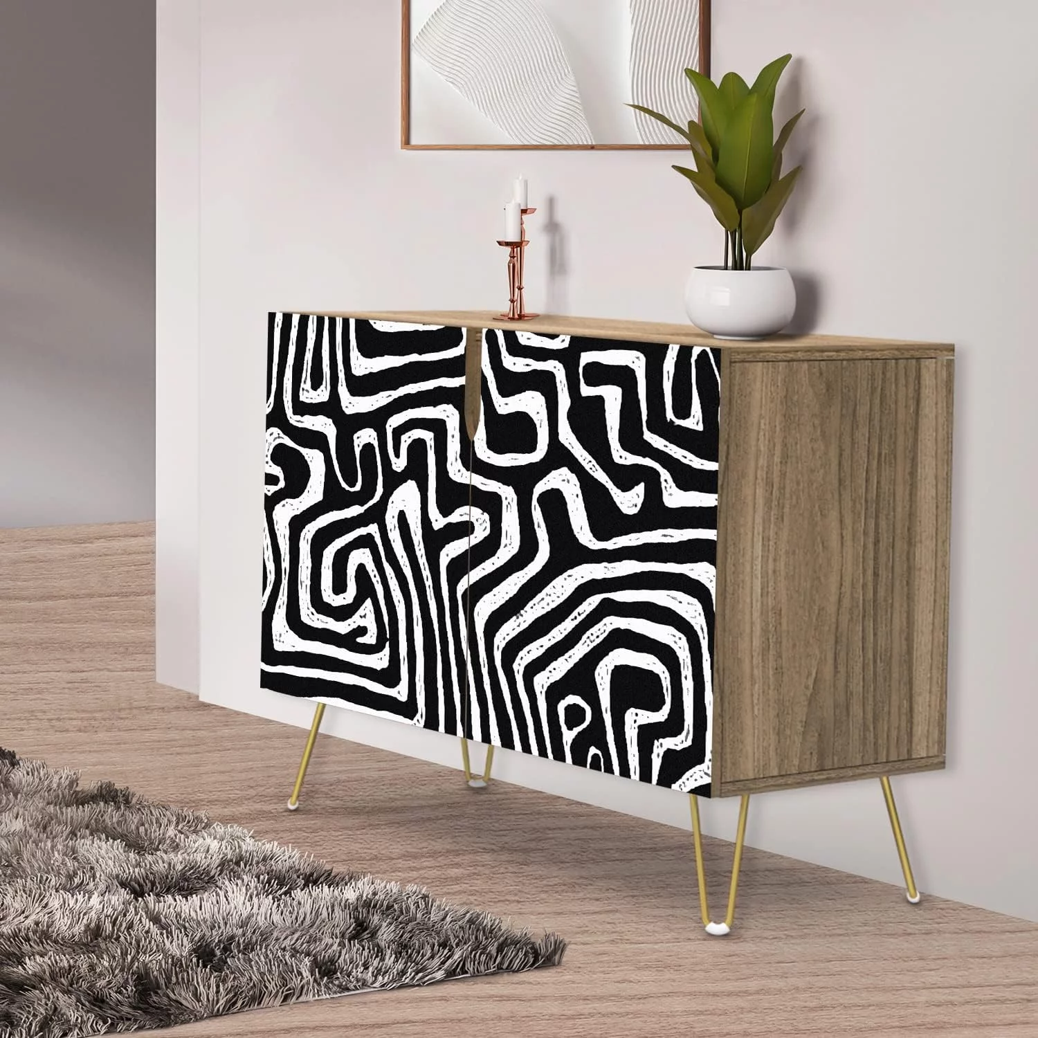 PixonSign Sideboard Buffet Cabinet, Kitchen Storage Cabinet with 2 Doors, Black & White Mid-Century Patterns, Cupboard Console Table for Dining Room - 35" L x 18" W x 29" H