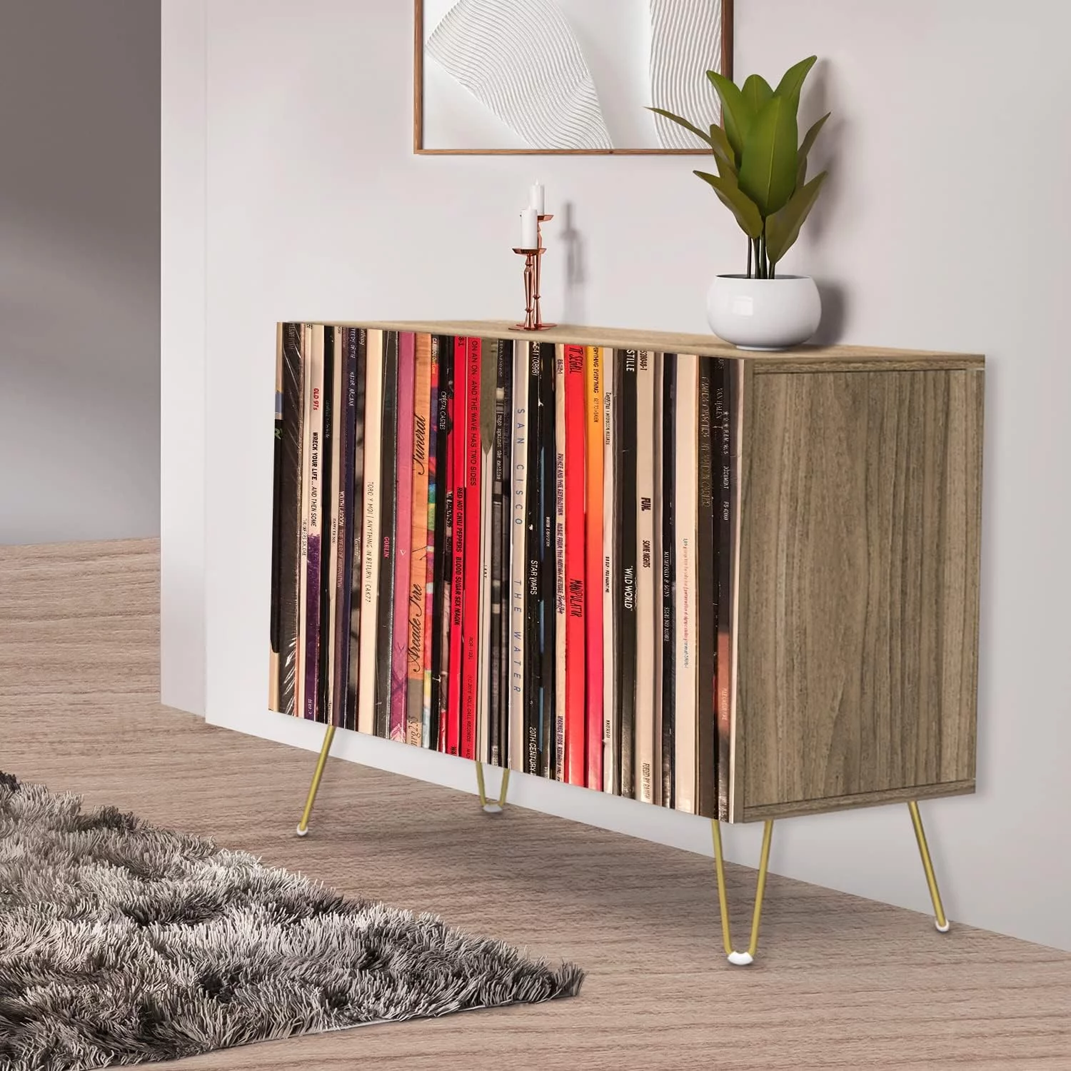 PixonSign Sideboard Buffet Cabinet, Kitchen Storage Cabinet with 2 Doors, Bookshelf Library Pattern Design, Cupboard Console Table for Dining Room - 35" L x 18" W x 29" H