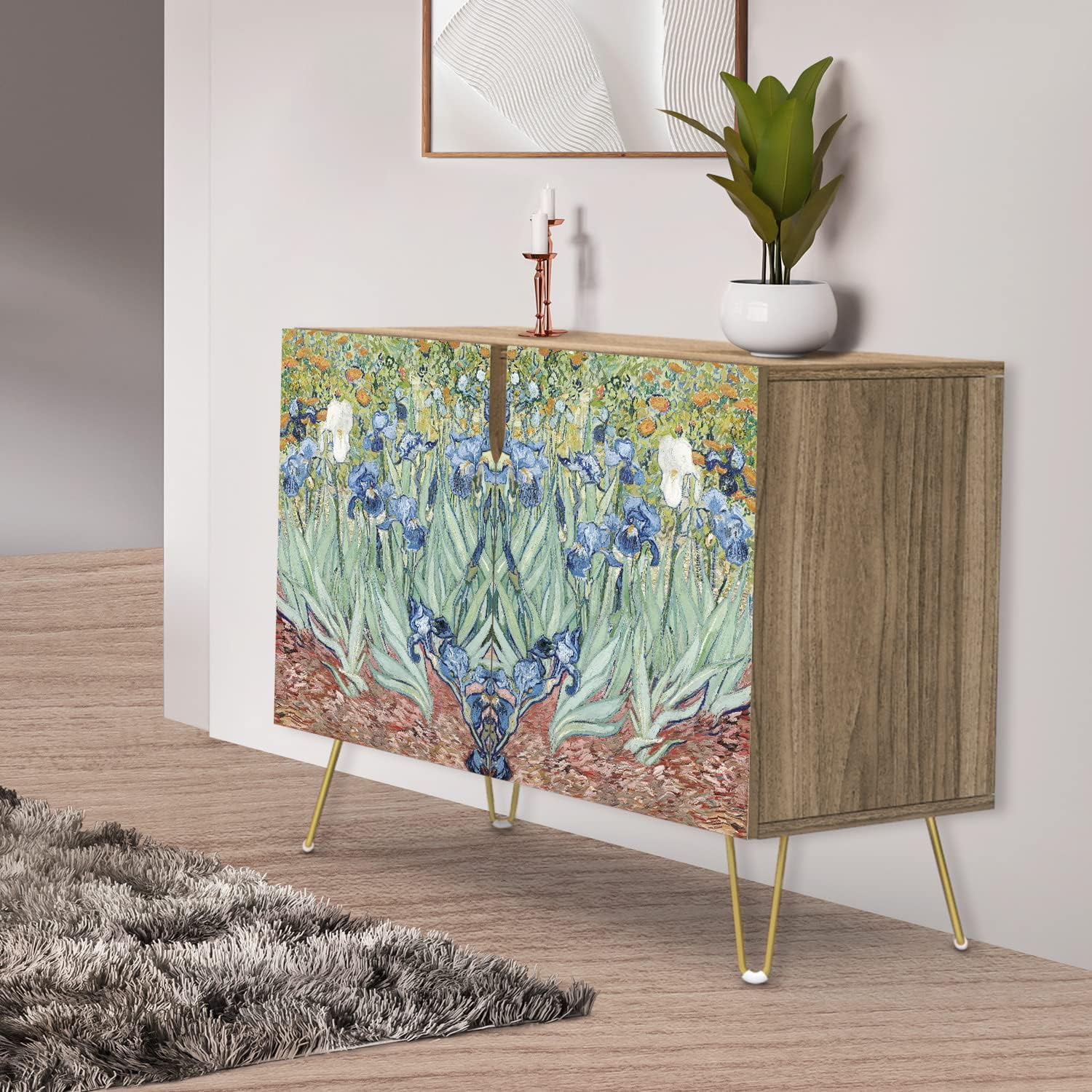 PixonSign Sideboard Buffet Cabinet, Kitchen Storage Cabinet with 2 Doors, Vibrant Blue Pastel Iris Flower Garden, Cupboard Console Table for Dining Room - 35" L x 18" W x 29" H