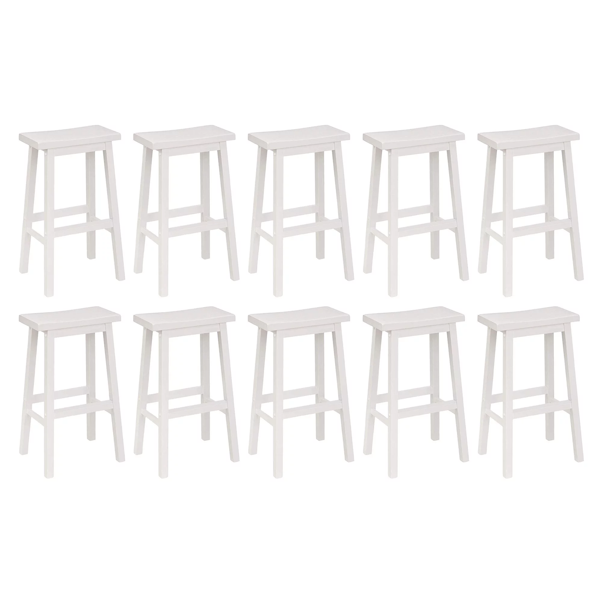 PJ Wood Classic 29'' Saddle Seat Kitchen Bar Counter Stool, White (10 Pack)
