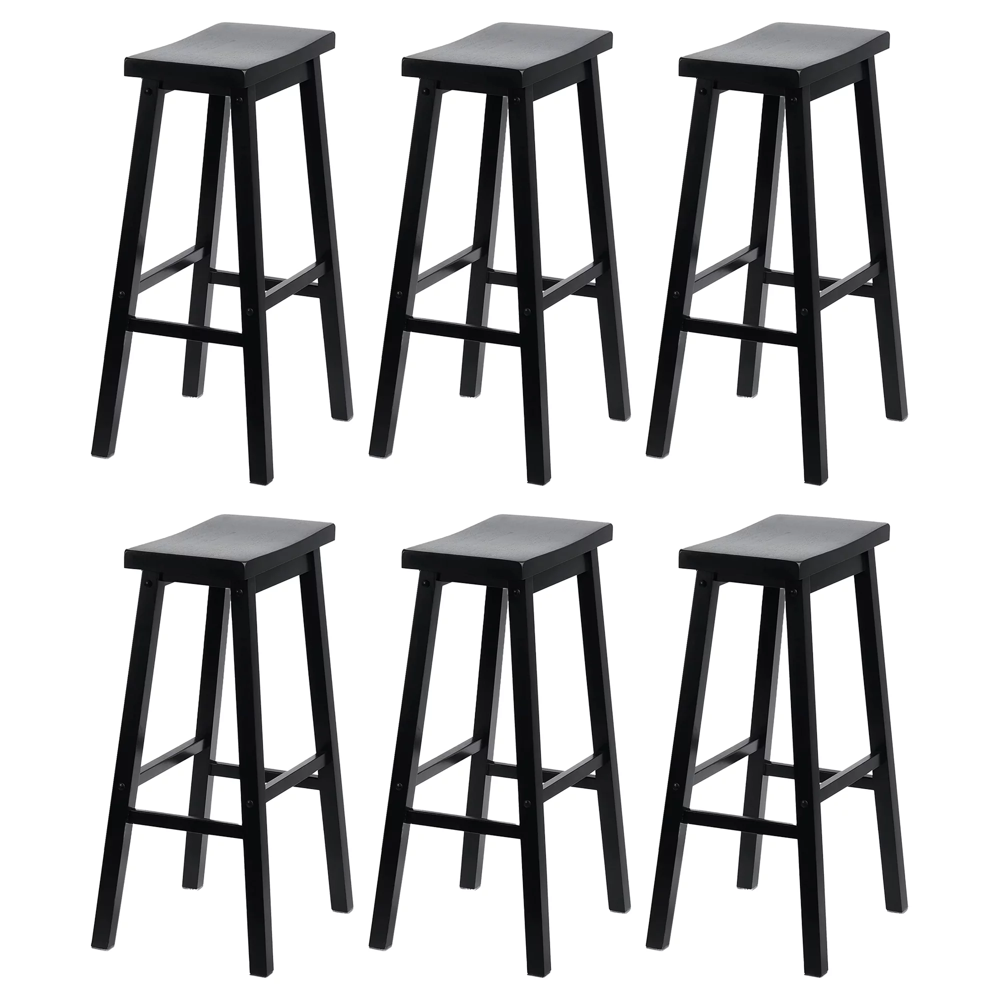 PJ Wood Classic Saddle-Seat 29" Kitchen Counter Stools, Black (6 Pack)