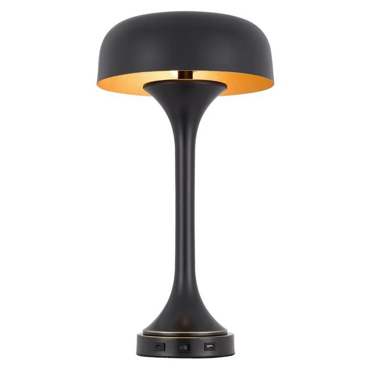HomeRoots 524741 22 in. Metal Two Light USB Table Lamp with Bronze Dome Shade, Bronze