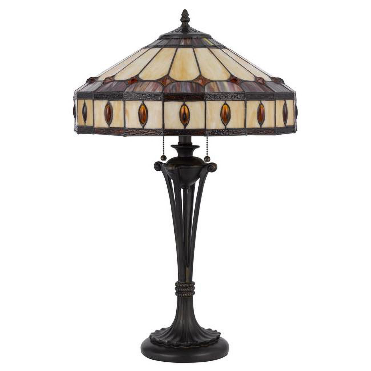 HomeRoots 524749 26 in. Metal Two Light Table Lamp with Purple & Ivory Dome Shade, Black