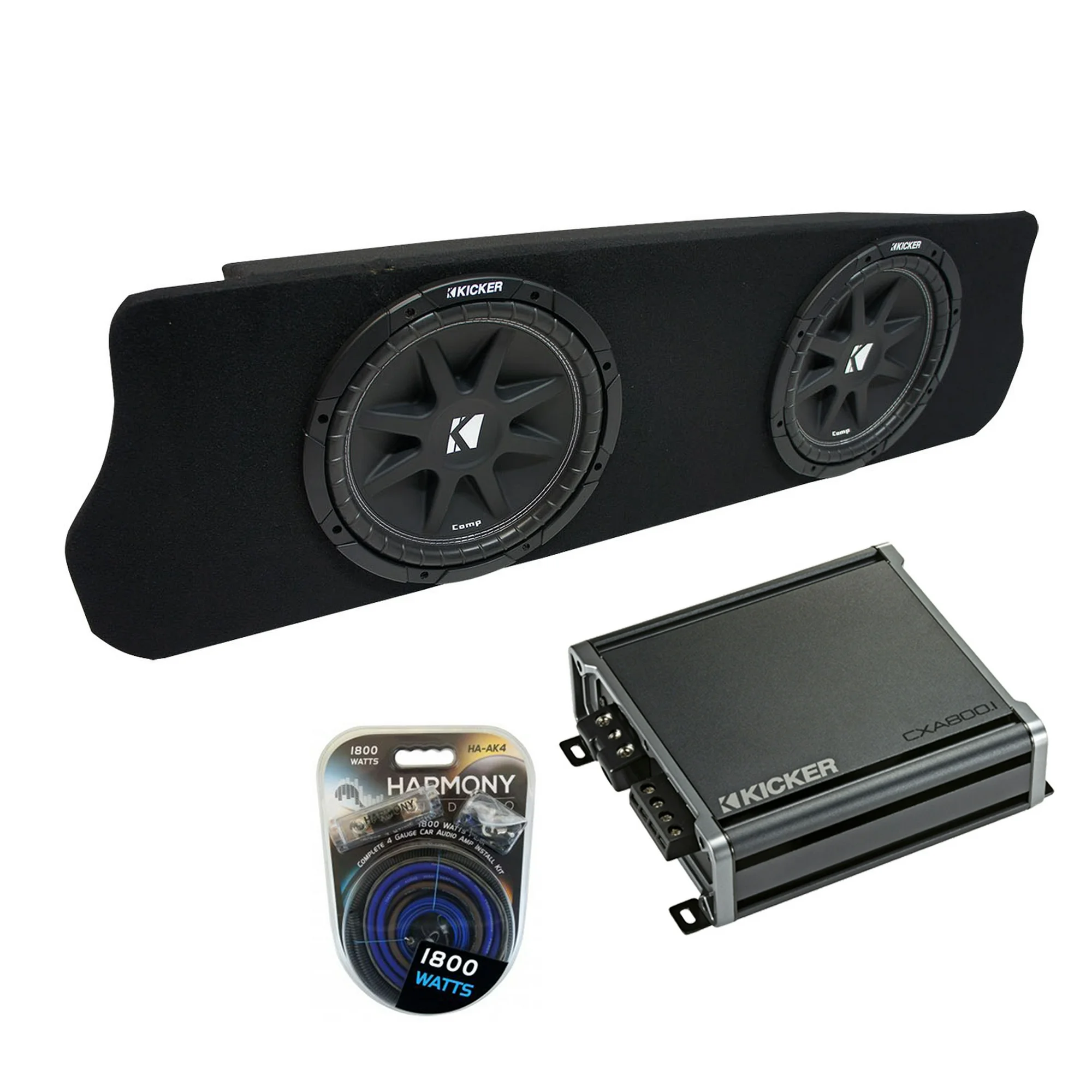 1994-2004 Ford Mustang Coupe Kicker Comp C10 Dual 10" Custom Sub Box & CXA800.1