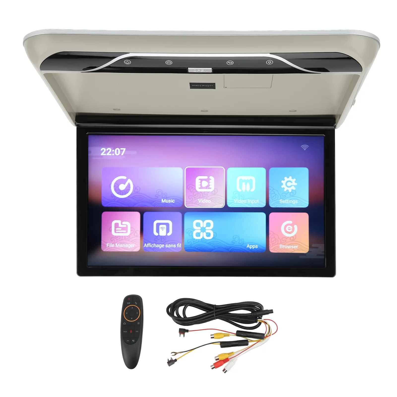 19in Car Overhead Player High Definition Touch Screen Flip Down Roof Mounted Monitor Multifunction for Android 9.0 Beige