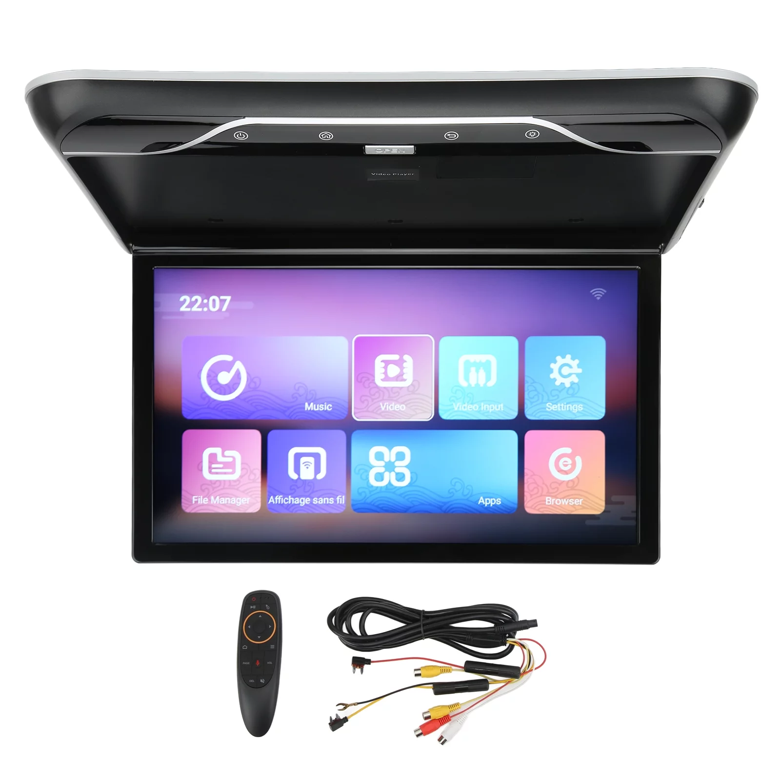 19in Car Overhead Player High Definition Touch Screen Flip Down Roof Mounted Monitor Multifunction for Android 9.0 Black