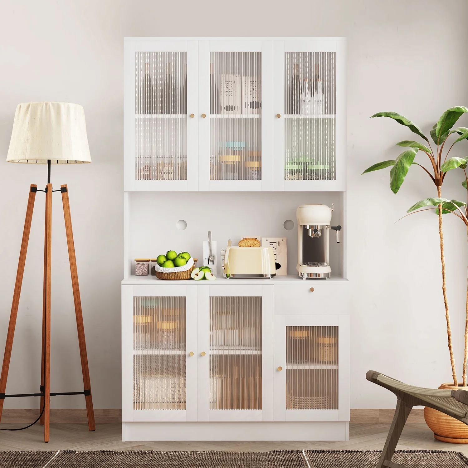 Kadyn Kitchen Pantry Cabinet, Storage Cabinet Cupboard,Kitchen Pantry Cabinet, Glass Door Cupboard 69.7" Freestanding Multifunctional Kitchen Pantry Cabinet Storage Cabinet Cupboard,White