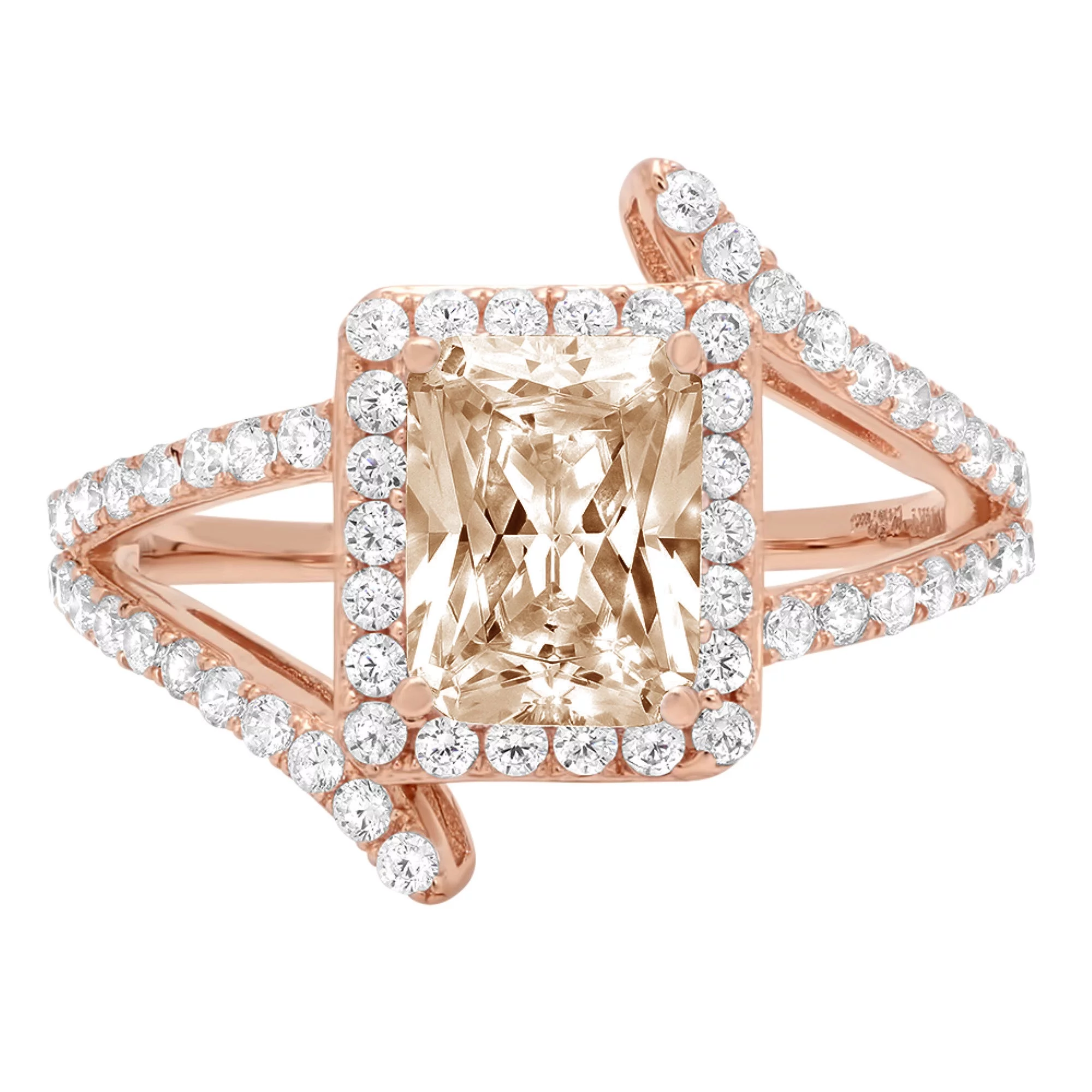 2.1ct emerald cut champagne simulated diamond 18k rose gold anniversary engagement halo ring size 3.75