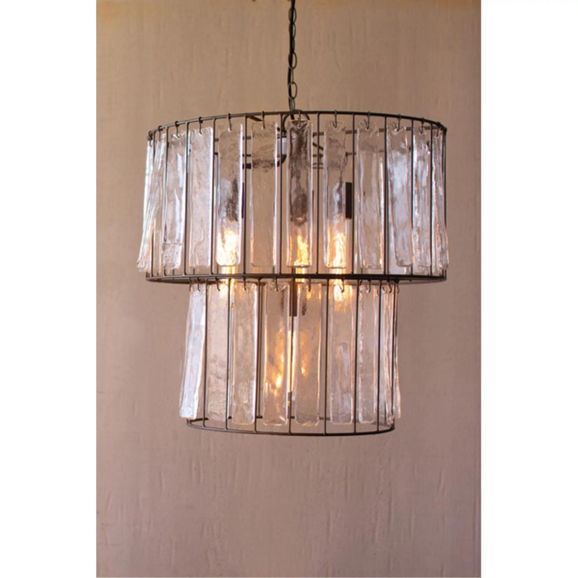 Kalalou CQ7411 20 x 20 in. Two Tiered Round Pendant Light with Glass Chimes