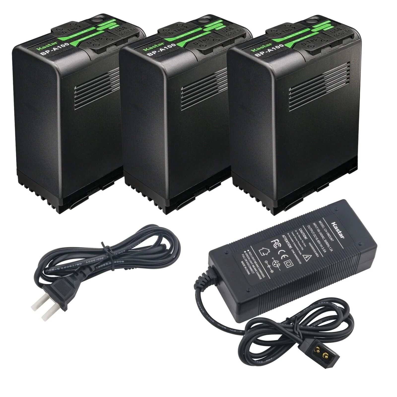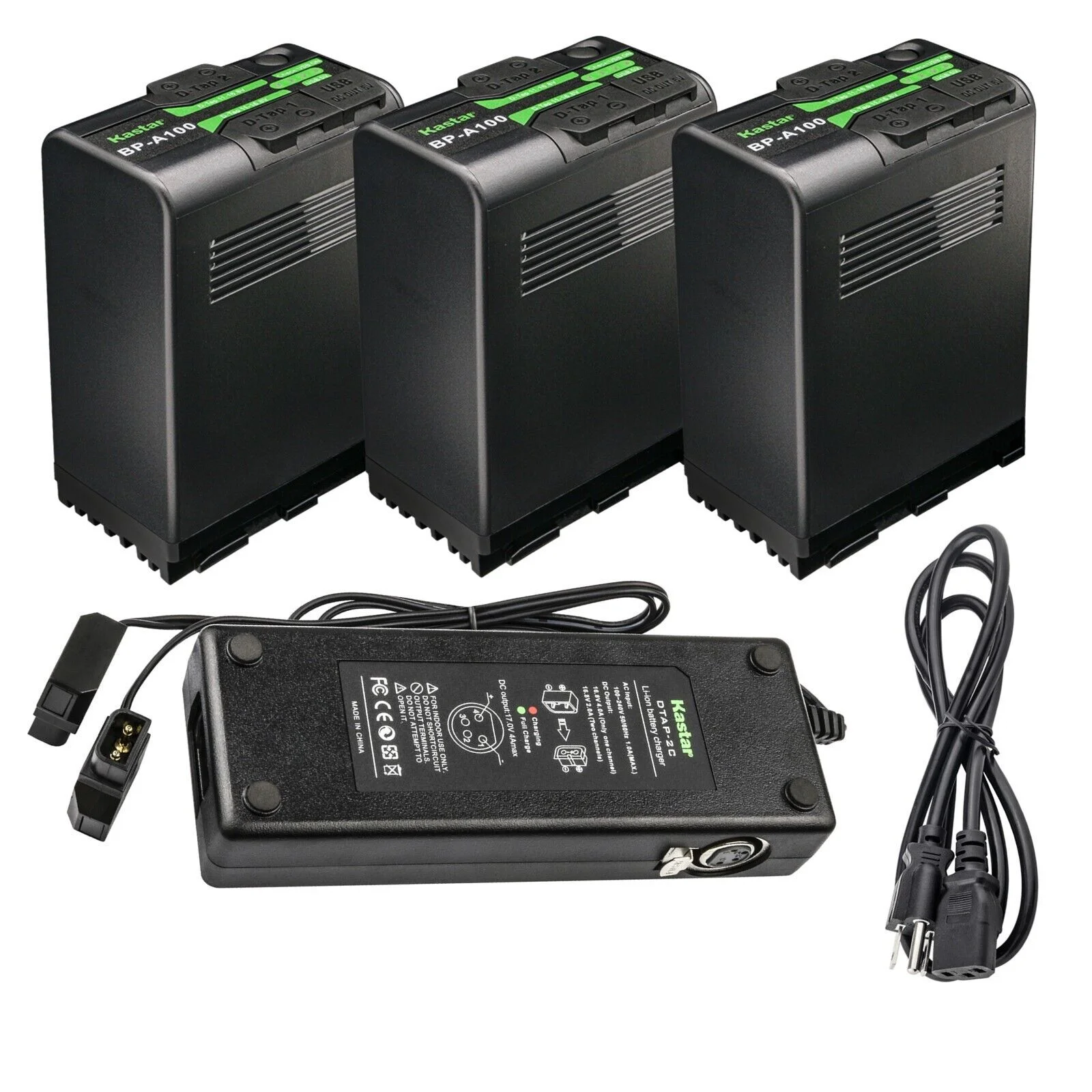 Kastar BP-A100 Battery 3 Pack and D-Tap Rapid Charger for Canon XF605 4K UHD, Canon XF705 4K UHD, EOS C200, EOS C200B Cinema Camcorder, EOS C220B PL Mount 4K UHD Digital Cinema Camera