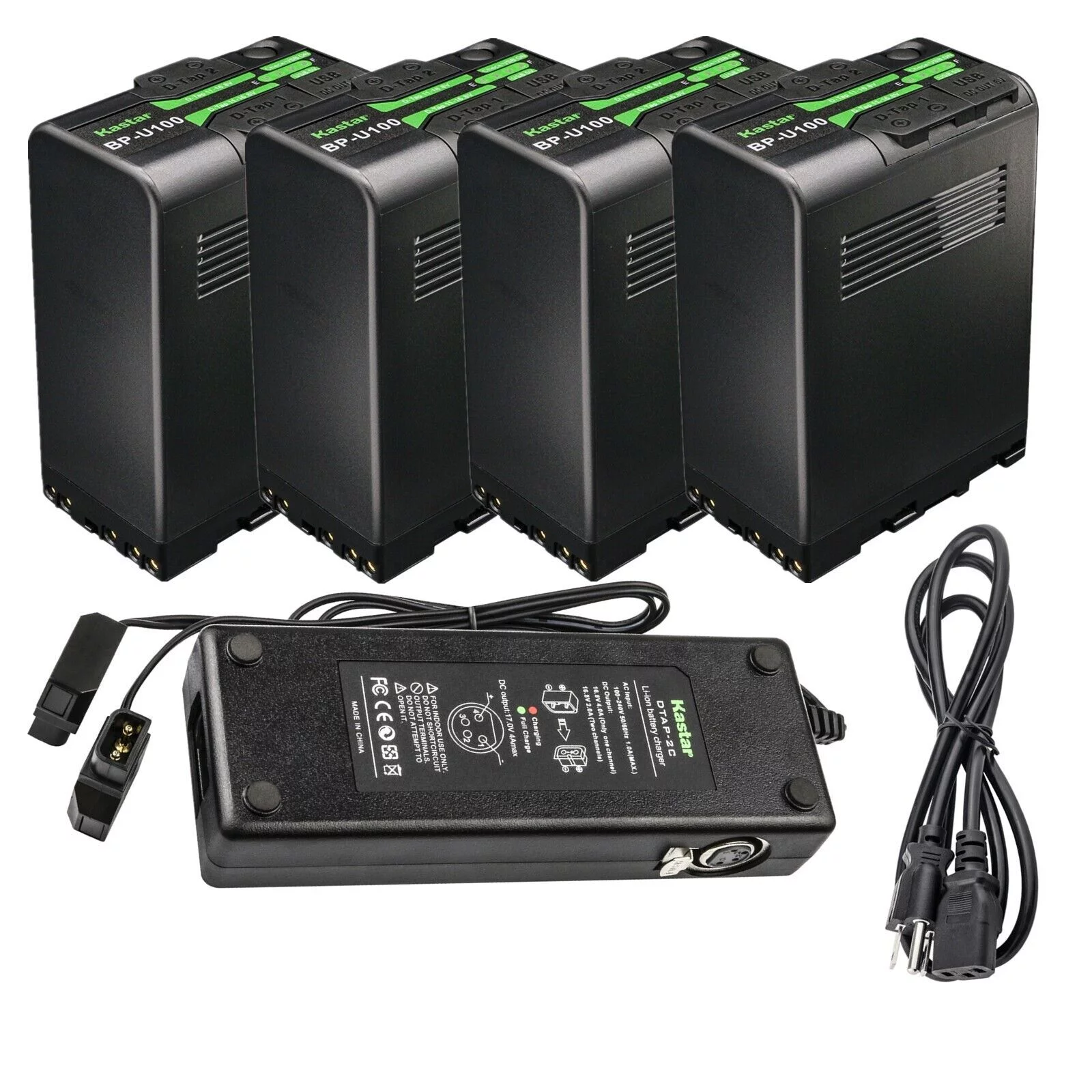 Kastar BP-U100 Battery 4 Pack and Dual D-Tap Charger for Sony PMW-300, PMW-300K1, PMW-EX1, PMW-EX1R, PMW-EX3, PMW-EX3R, PMW-EX160, PMW-EX260, PMW-EX280, PMW-F3, PMW-F3K, PMW-F3LL, XDCAM EX Camera