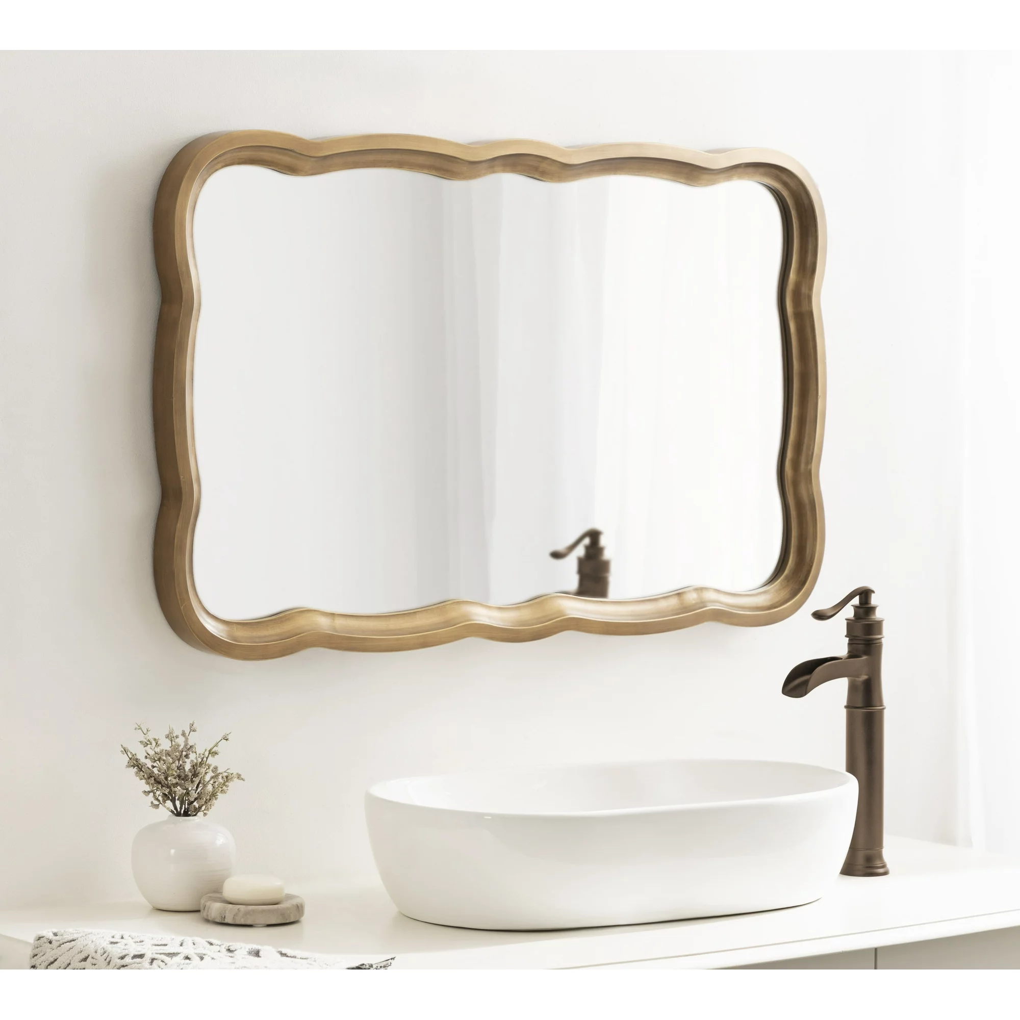 Kate and Laurel Hatherleigh Scallop Wooden Vintage Wavy Wall Mirror, 24 x 38, Antique Gold