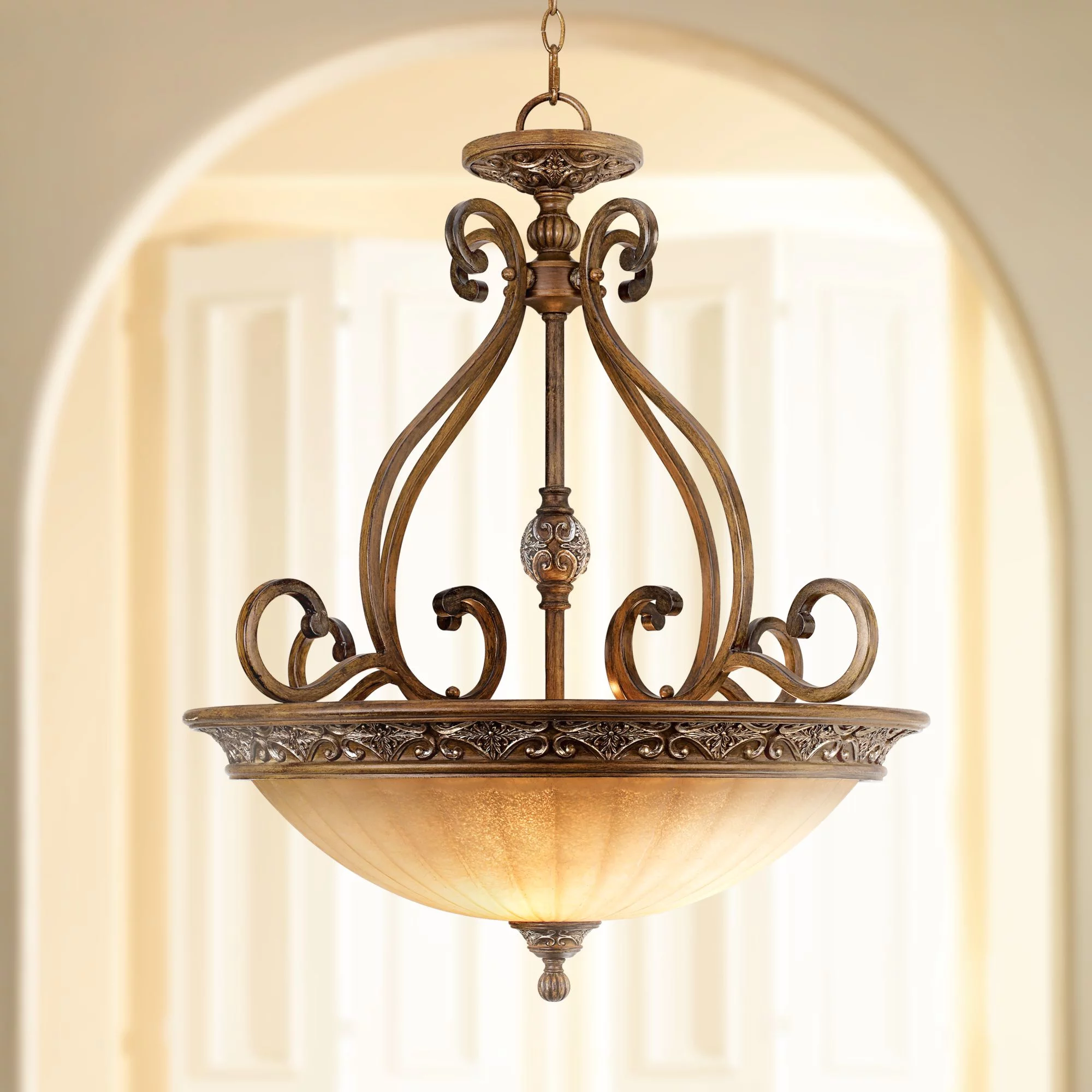 Kathy Ireland Sterling Estate Golden Bronze Pendant Chandelier 26 1/2" Wide Rustic Champagne Bowl Shade 3-Light Fixture for Dining Room Kitchen Island