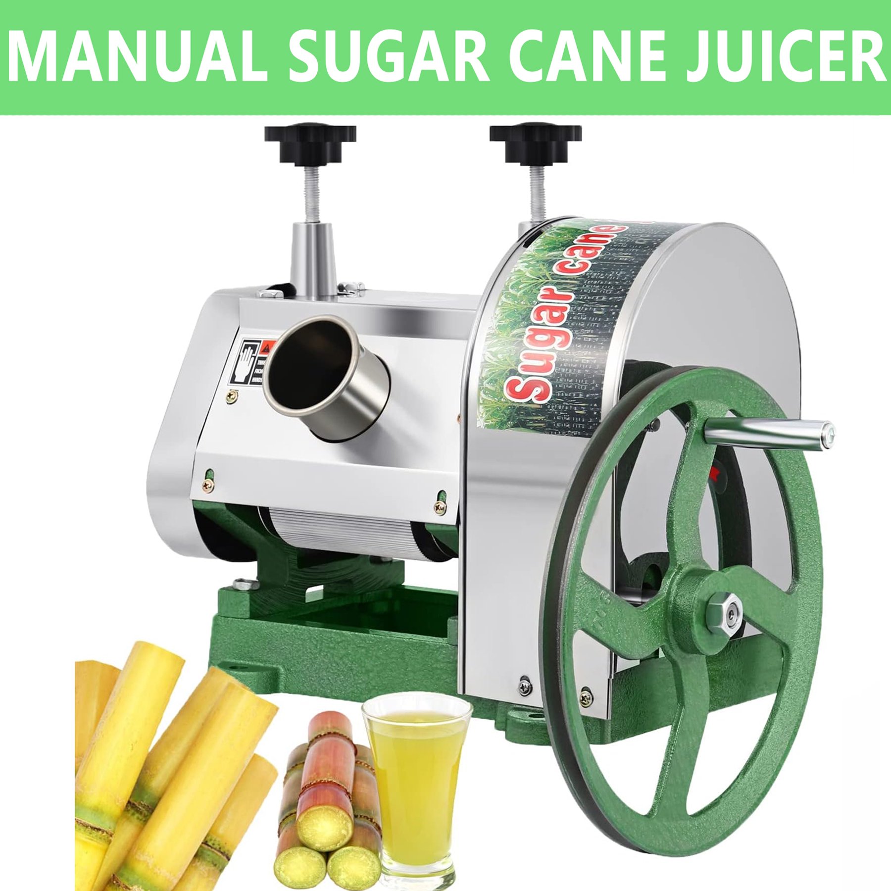 KAYESAMPRA Manual Sugar Cane Juicer Machine Stainless Steel 110LBS Output per Hour with 2" Large Inlet + 3 Steel Rollers + Handwheel, Press Squeezer for Homes & Shops