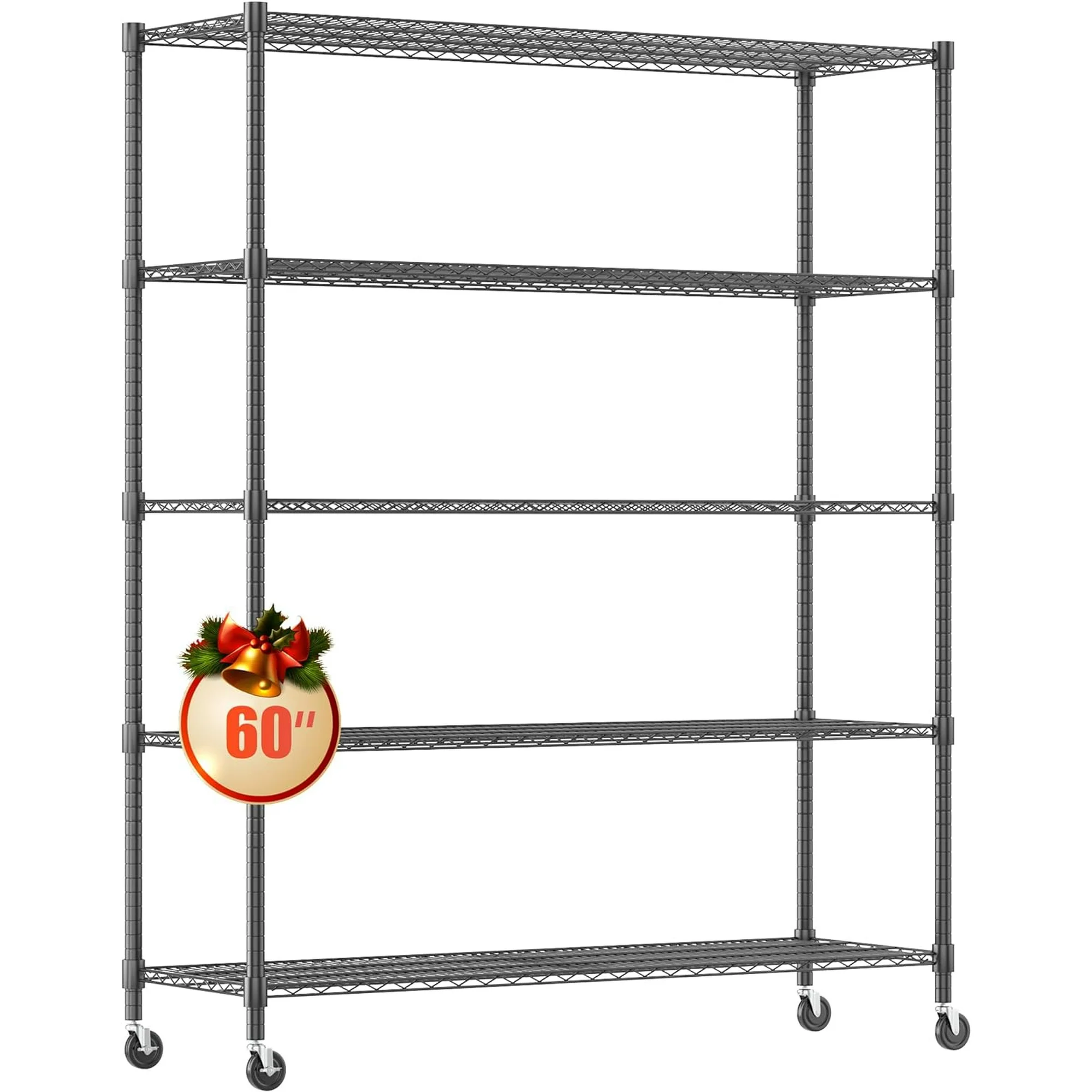 KEMANHUAN 5 Tier Storage Racks and Shelving, 24"x60"x82" Heavy Duty Metal Shelves for Storage, 3000LBS Commercial Adjustable Wire Shelving Unit on Wheels for Garage, Pantry, Kitchen, Warehouses, Black