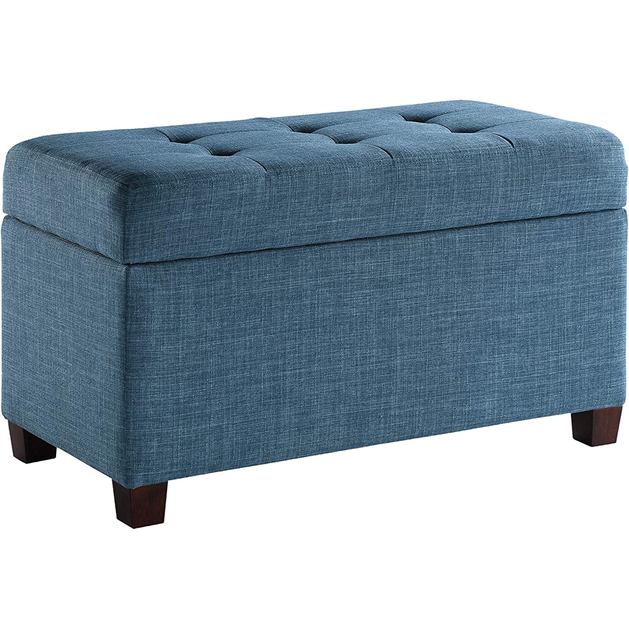 KEMANHUAN Metro Tufted Rectangular Storage Ottoman with Padded Upholstery and Soft Closing Hinges, Blue Fabric
