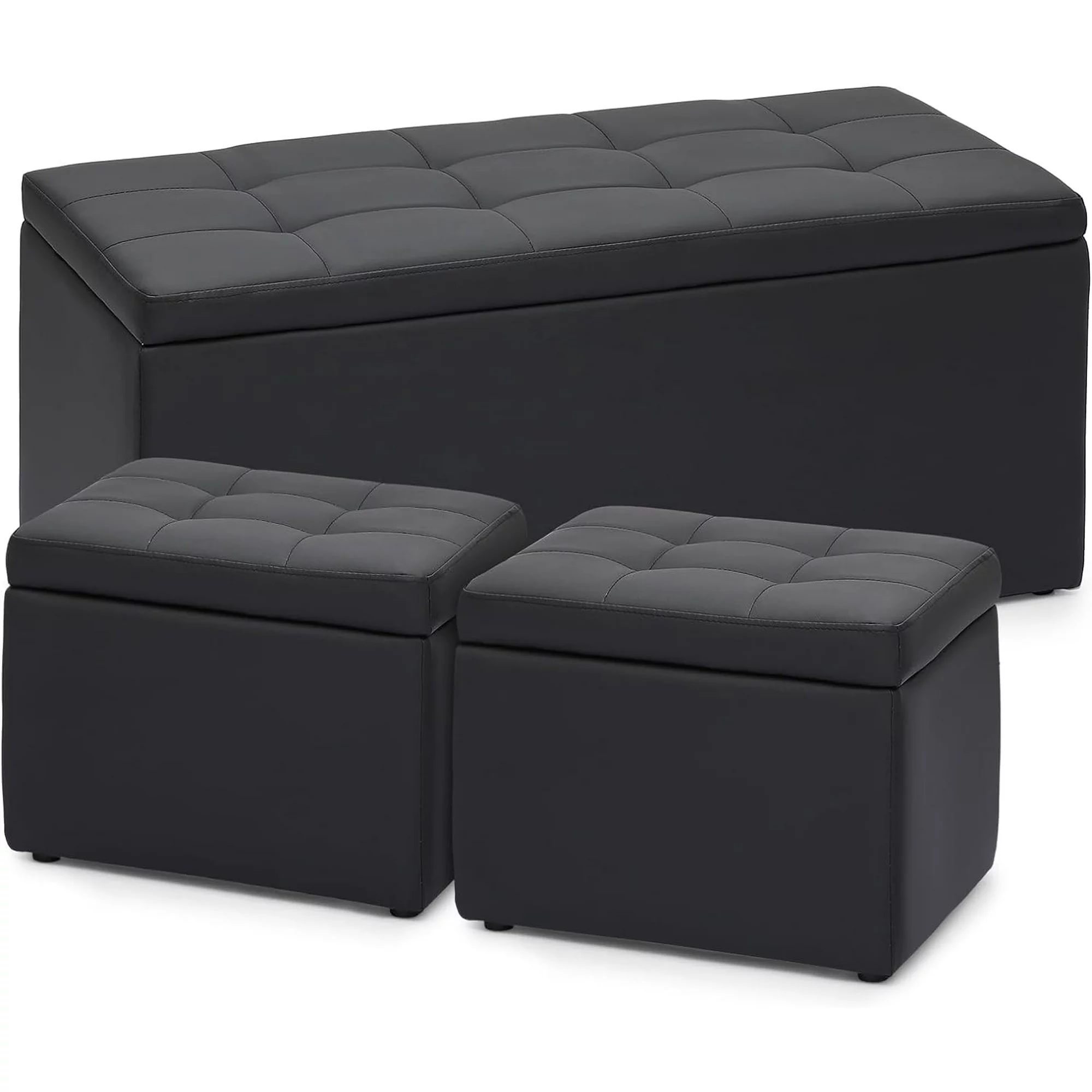 KEMANHUAN Rectangular Storage Bench Tufted Footrest with Cube Ottomans Set of 3