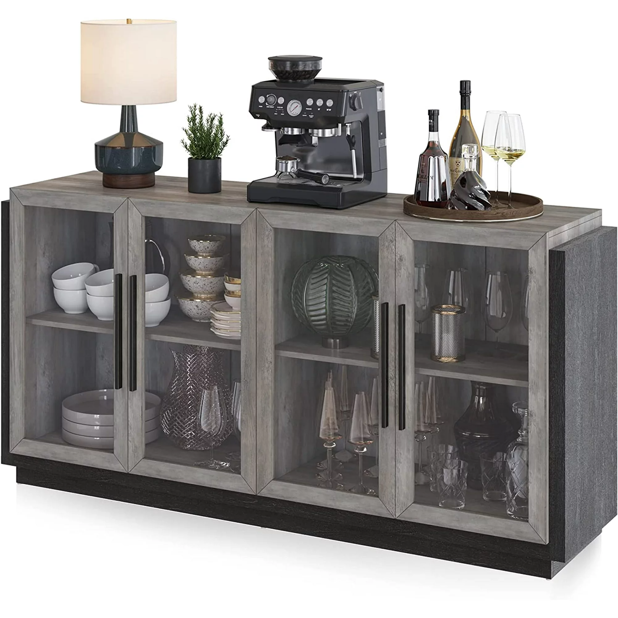 KEMANHUAN Sideboard Buffet Cabinet, Modern Wood Glass-Buffet-Sideboard with Storage, Console Table for Kitchen, Dining Room, Living Room, Hallway, or Entrance - Brixston (Grey)