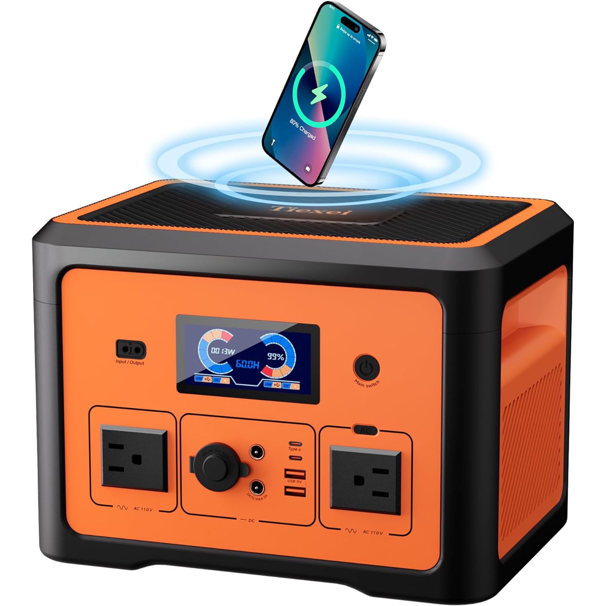 Portable Power Station, 1100Wh Generator With 1200W (Peak 2000W) 110V AC Outlets, 120W 12V DC, QC3.0&TypeC, SOS Flashlight