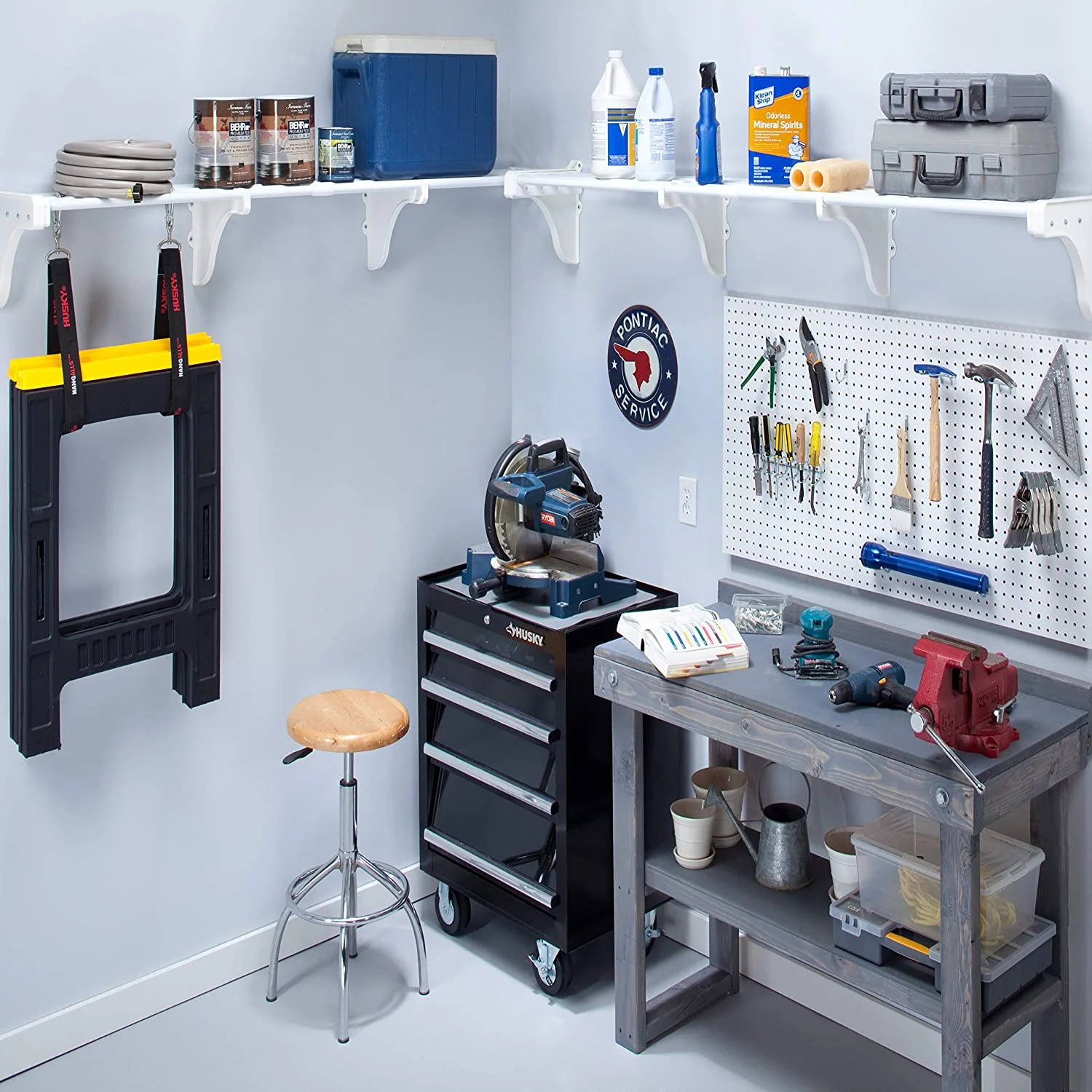 KEMANHUAN-Expandable-Garage Shelves-2 Pack(each 40" to 75")-White-Easy to Install-Strong(250 Lbs/shelf)-Wire Shelving Alternative-Wall Mounted Garage Storage Organizer(EZS-G-SW72-2)