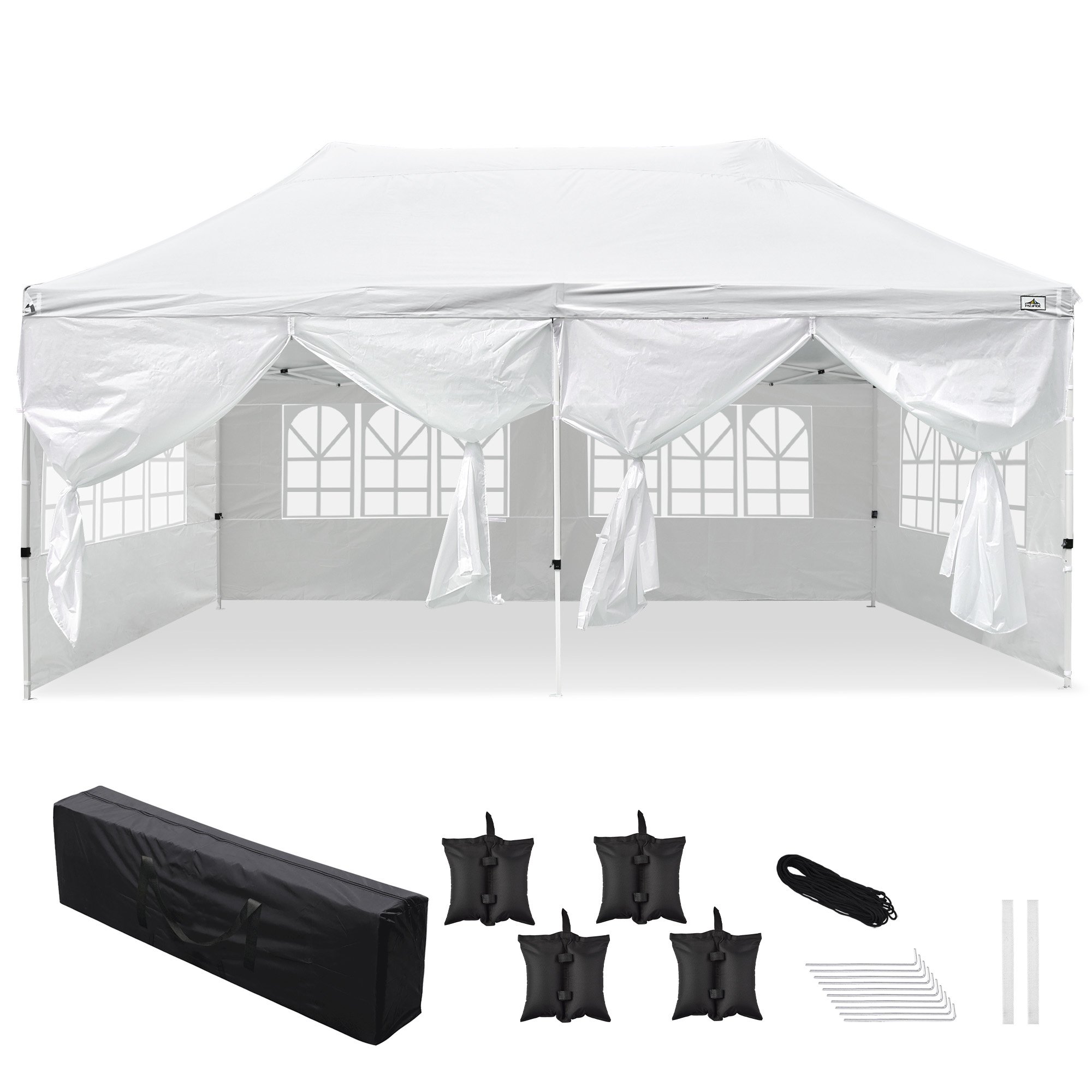 Portable Pop Up Gazebo with 4 Sidewalls - 10x20ft - White - 99.43 - Experience outdoor comfort under this versatile canopy gazebo!